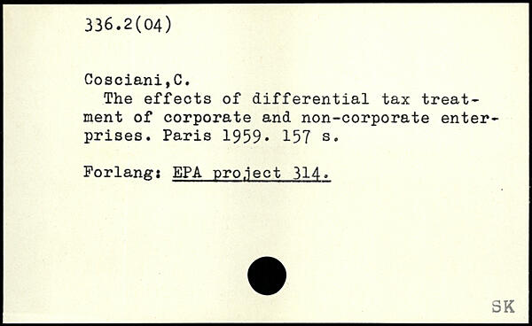 The effects of differential tax treatment of corporate and non-corporate enterprises.