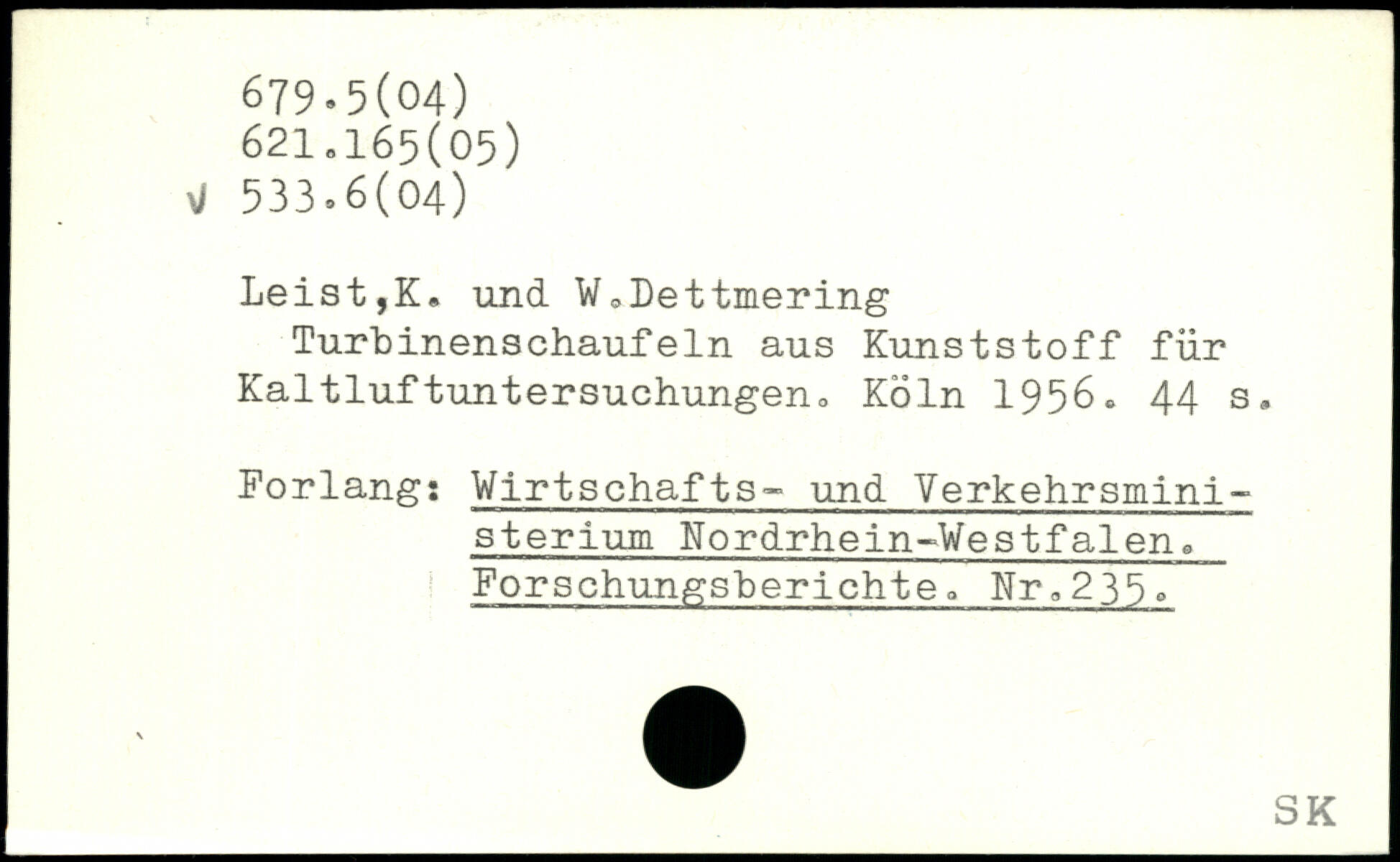 Leist,K. und W.Det tinering Turbinenschaufeln aus Kunststoff fur Kaltluftuntersuchungeru