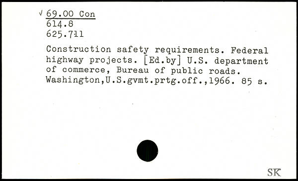 Construction safety requirements. Federal highway projects. [Ed.by] U.S. department of commerce, Bureau of public roads. Washington,U.S.gvmt.prtg.off.,1966.