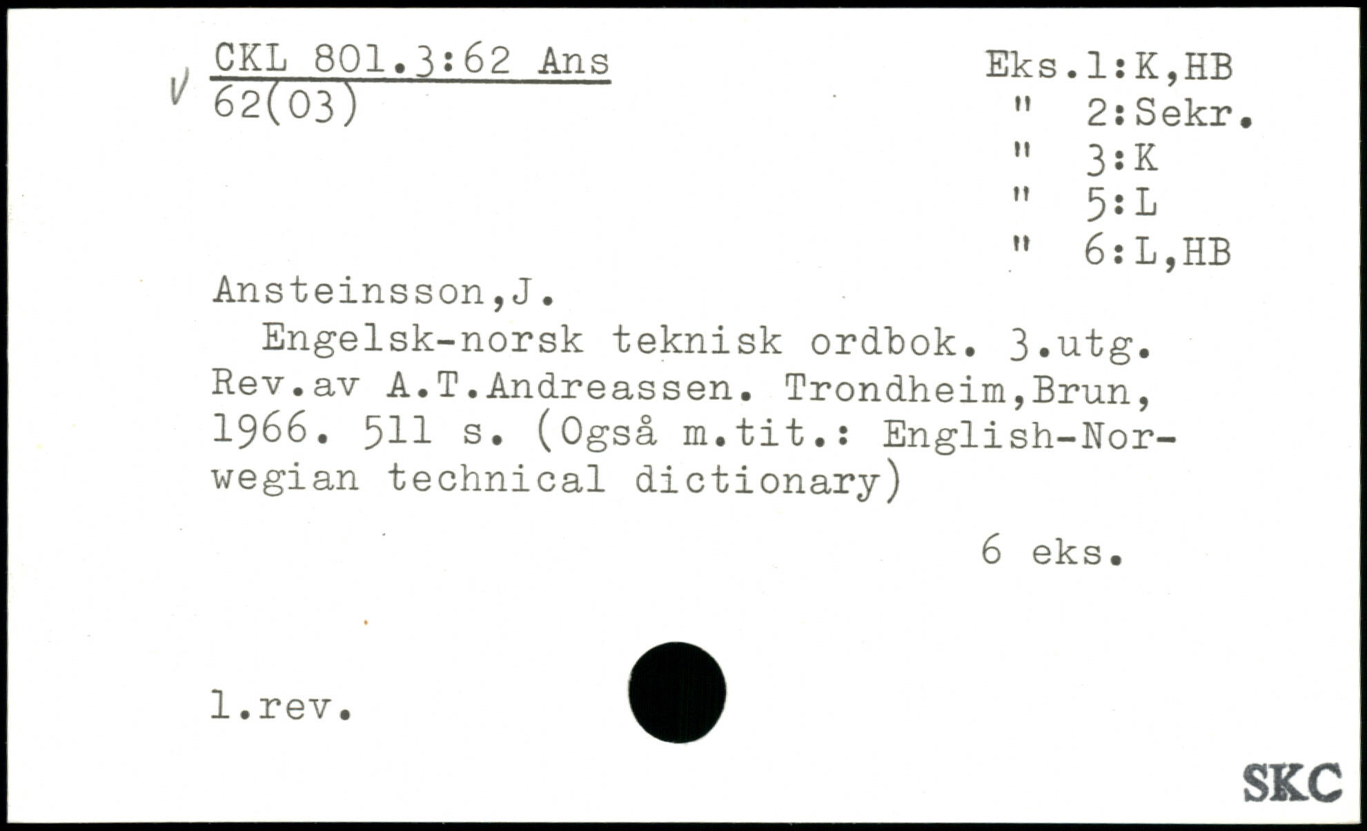 Engelsk-norsk teknisk ordbok. 3.utg. Rev.av A.T.Andreassen.