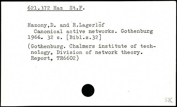 Canonical active networks. Gothenburg 196-6-
