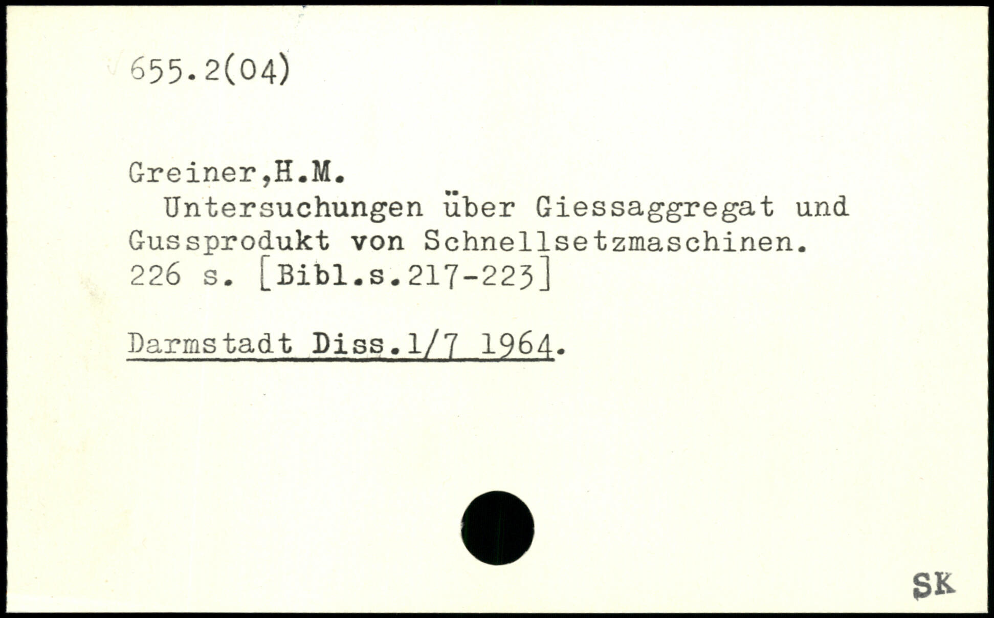 Untersuchungen über Giessaggregat und Gussprodukt von Schnellsetzmaschinen.