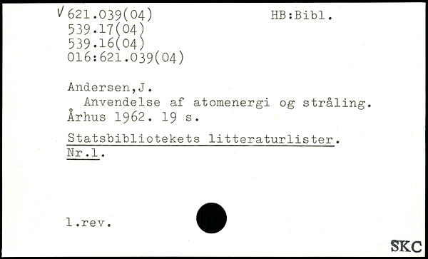 Anvendelse af atomenergi og stråling. Århus 1962.