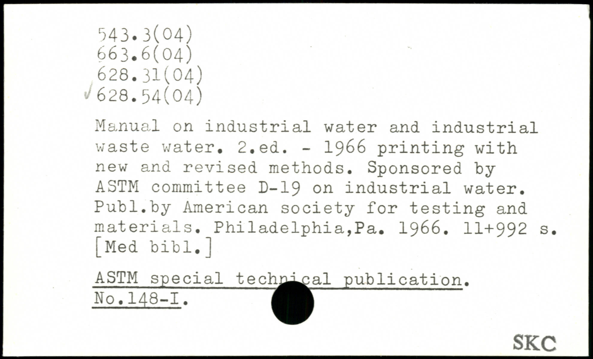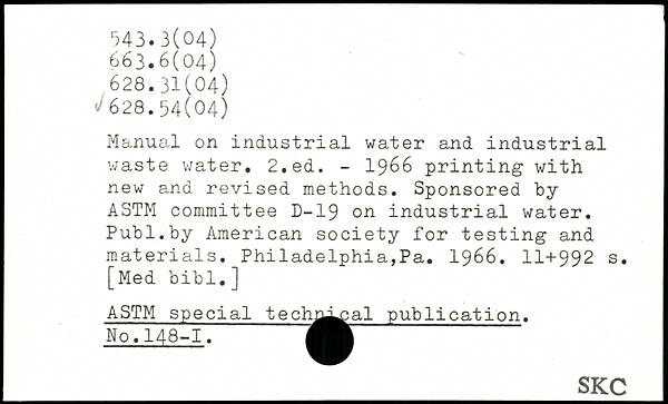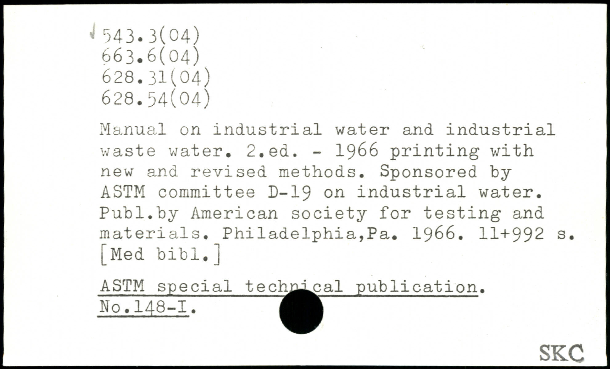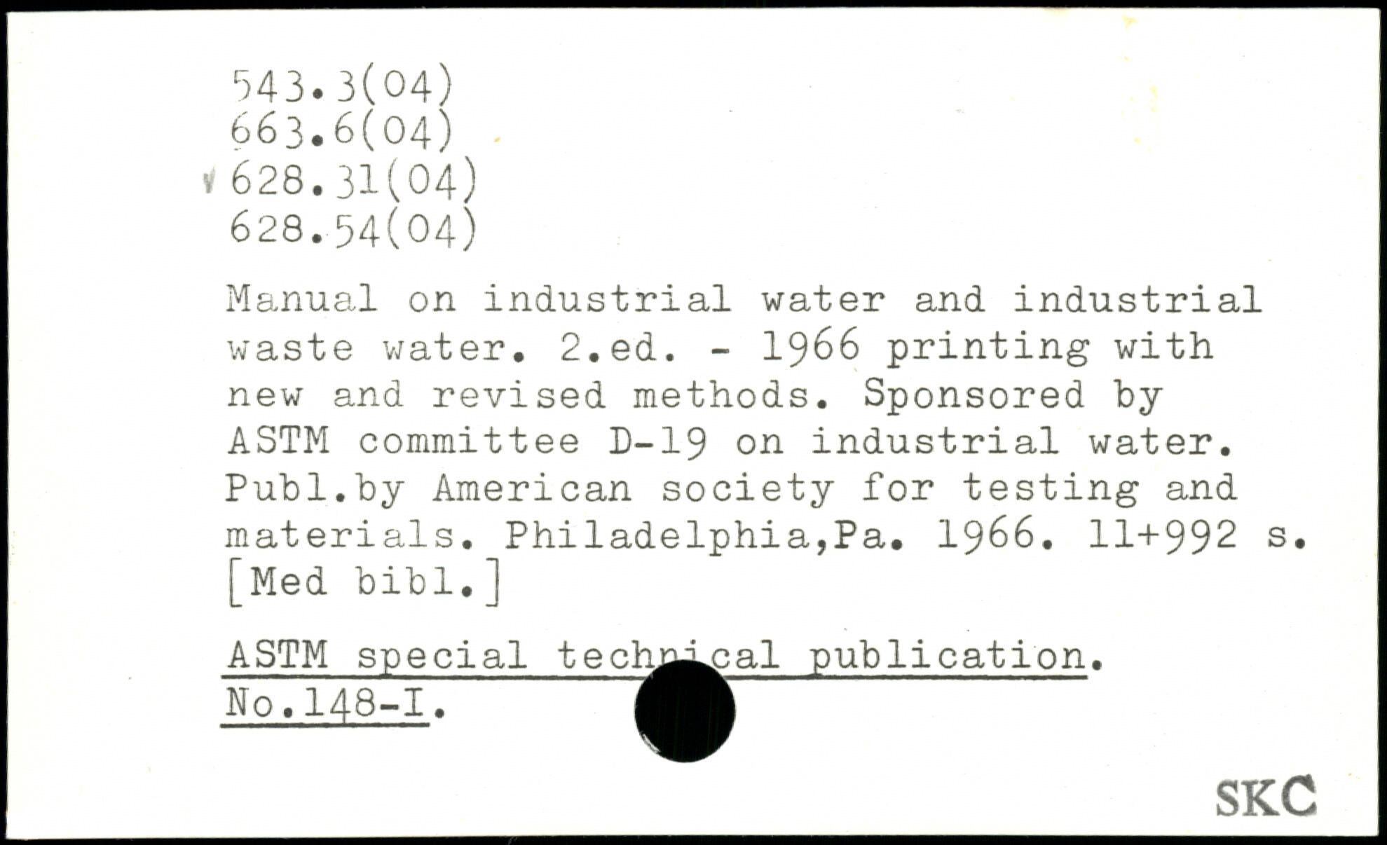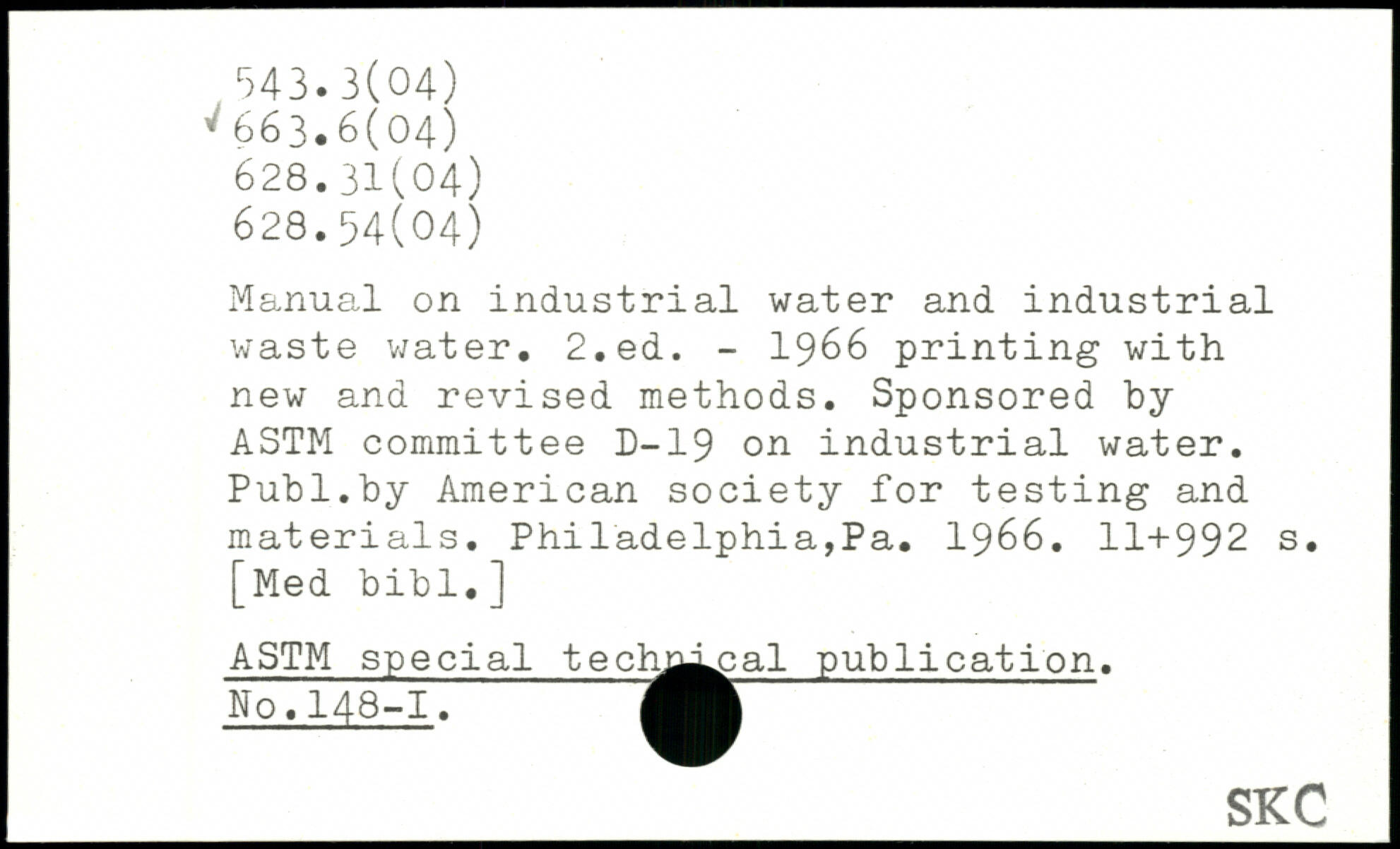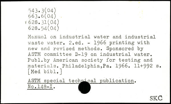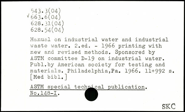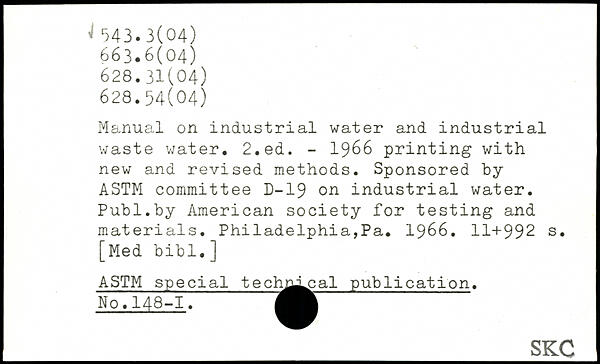 Manual on industrial water and industrial waste water, 2,ed. - 1966 printing with new and revised methods. Sponsored by ASTM committee D-19 on industrial water.