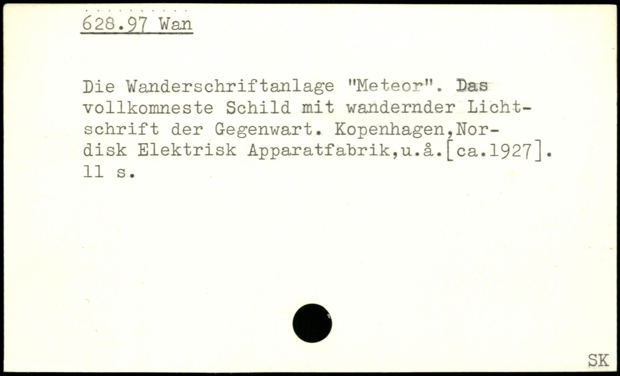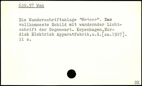Die Wan.dersch.riftanlage ”Meteor”. Das vollkomneste Schild mit wandernder Lichtschrift der Gegenwart. Kopenhagen,ITor-disk Elektrisk Apparatfabrik,u.ä.[ca.1927].