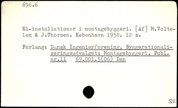 El-installationer i montagebyggeri. [Af] M.Volte-len & J.Thorsen.