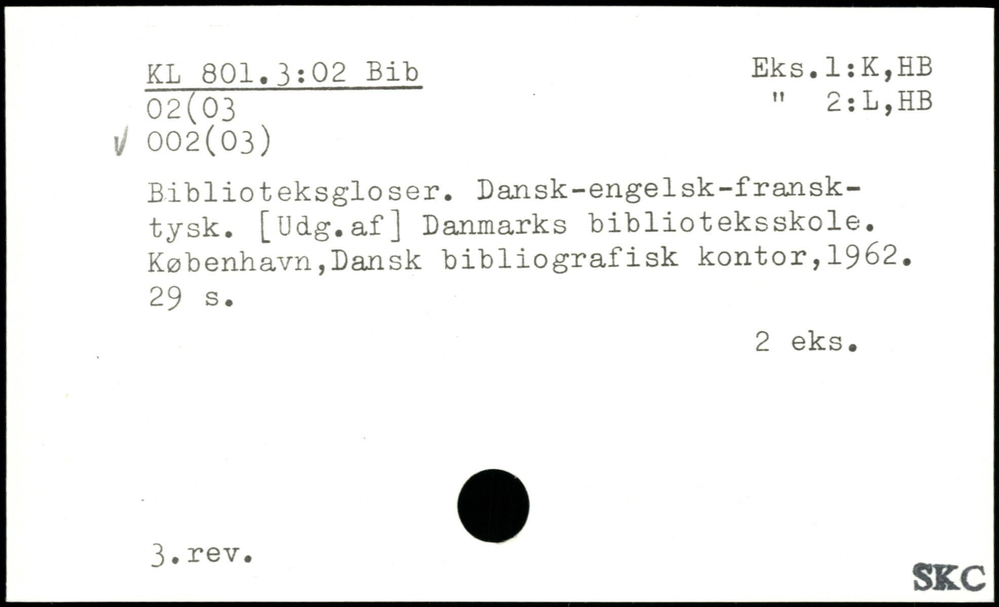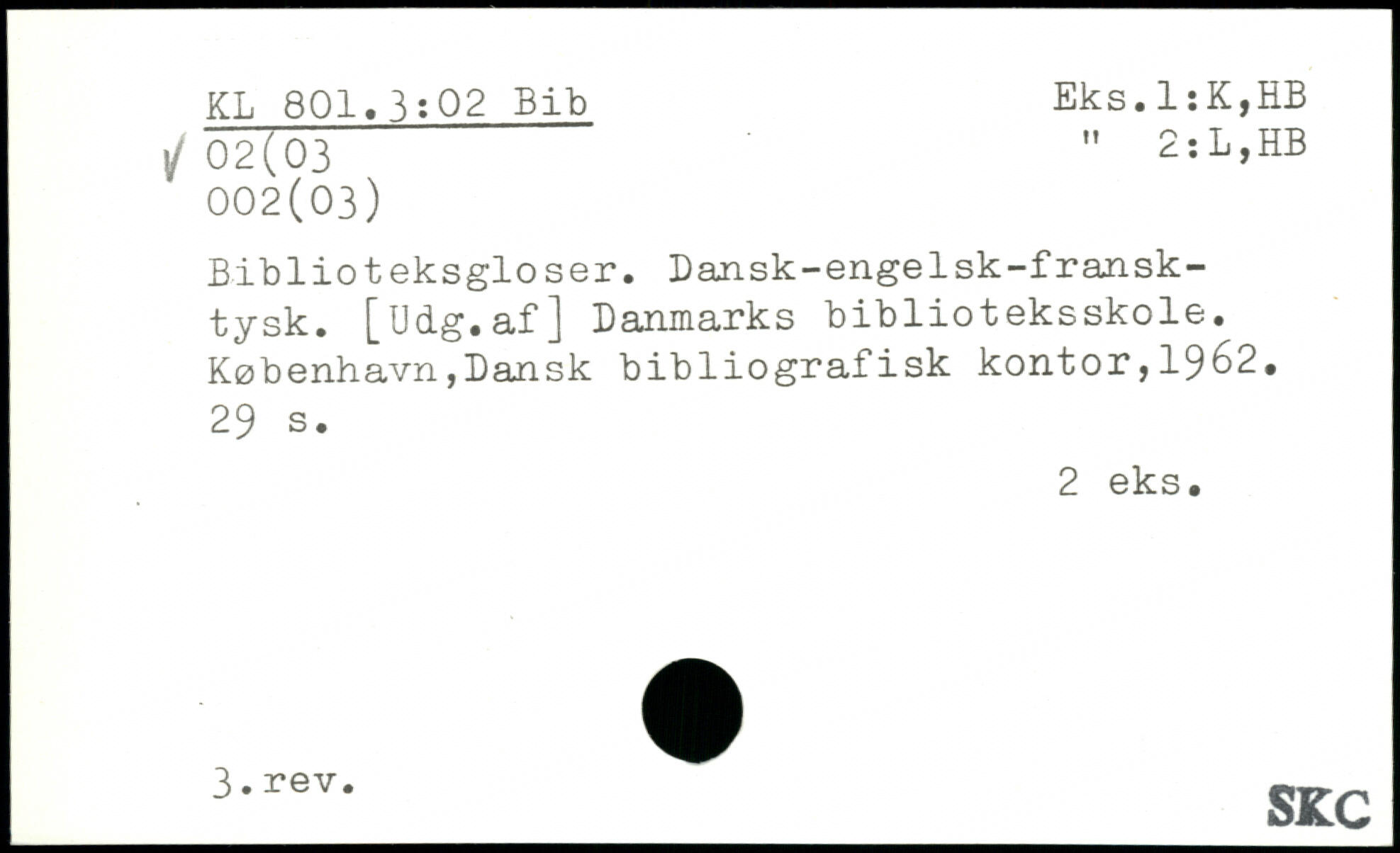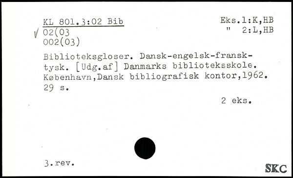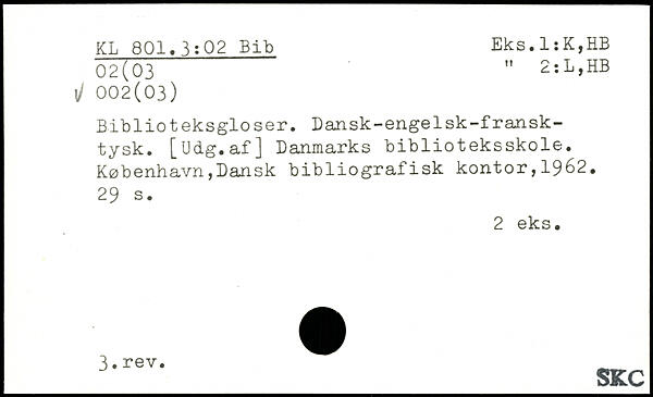 Biblioteksgloser. Dansk-enge1sk-fransk-tysk. [Udg.af] Danmarks biblioteksskole.