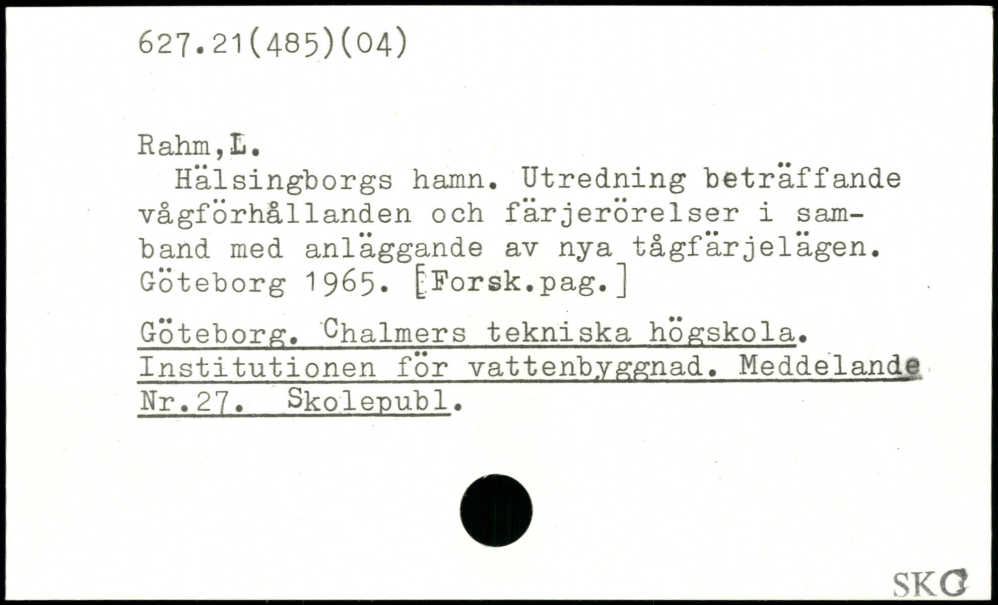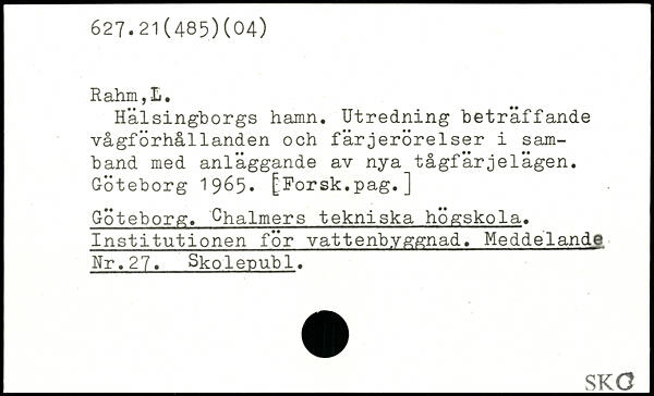 Rahm, Ii. Hälsingborgs hamn. Utredning beträffande vågförhållanden och färjerörelser i samband med anläggande av nya tågfärjelägen. Göteborg 19&5, ^orsk.pag. ] Göteborg. Chalmers tekniska högskola. Institutionen för vattenbyggnad. Meddelande Nr.27. Skolepubl.