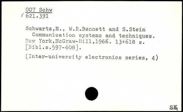 Schwartz,M., W.R.Bennett and S.Stein Communication systems and techniques.