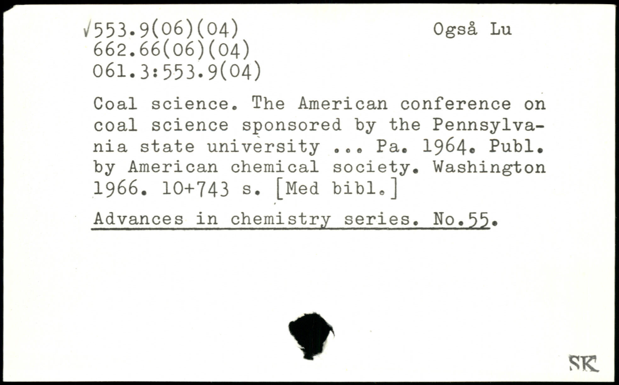 Coal science. The American conference on coal science sponsored by the Pennsylvania state university ... Pa. 1964, Publ# by American chemical society.