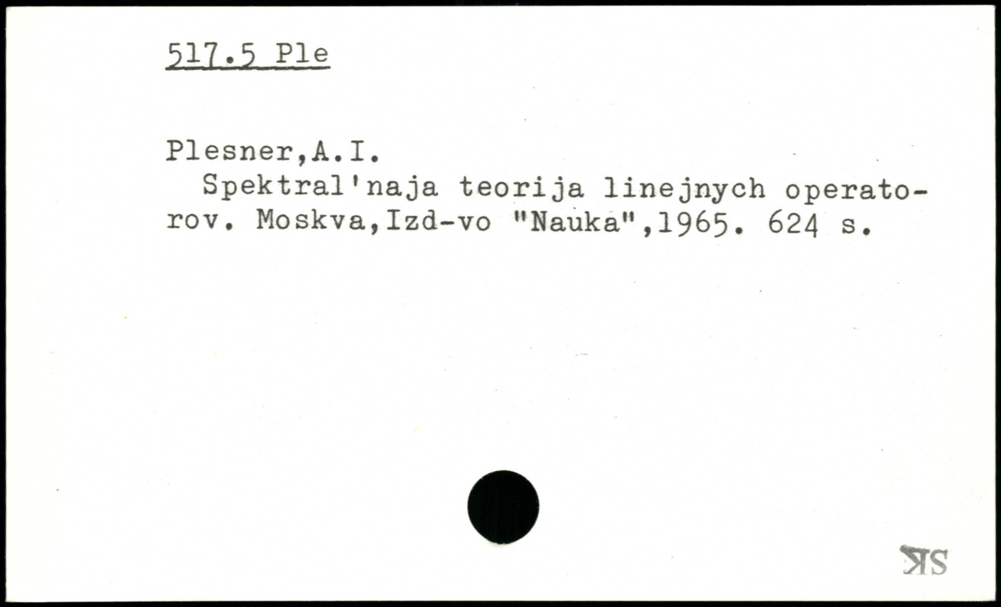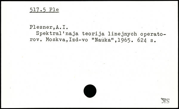 Spektral.naja teorija linejnych operato-rov. Moskva,Izd-vo "Naùka",1965.