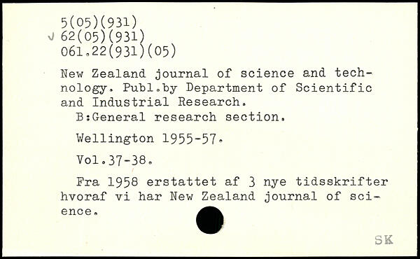 New Zealand journal of science and technology. Publ.hy Department of Scientific and Industrial Research. BsGeneral research section. Wellington 1955~57.