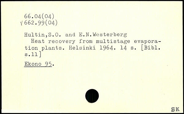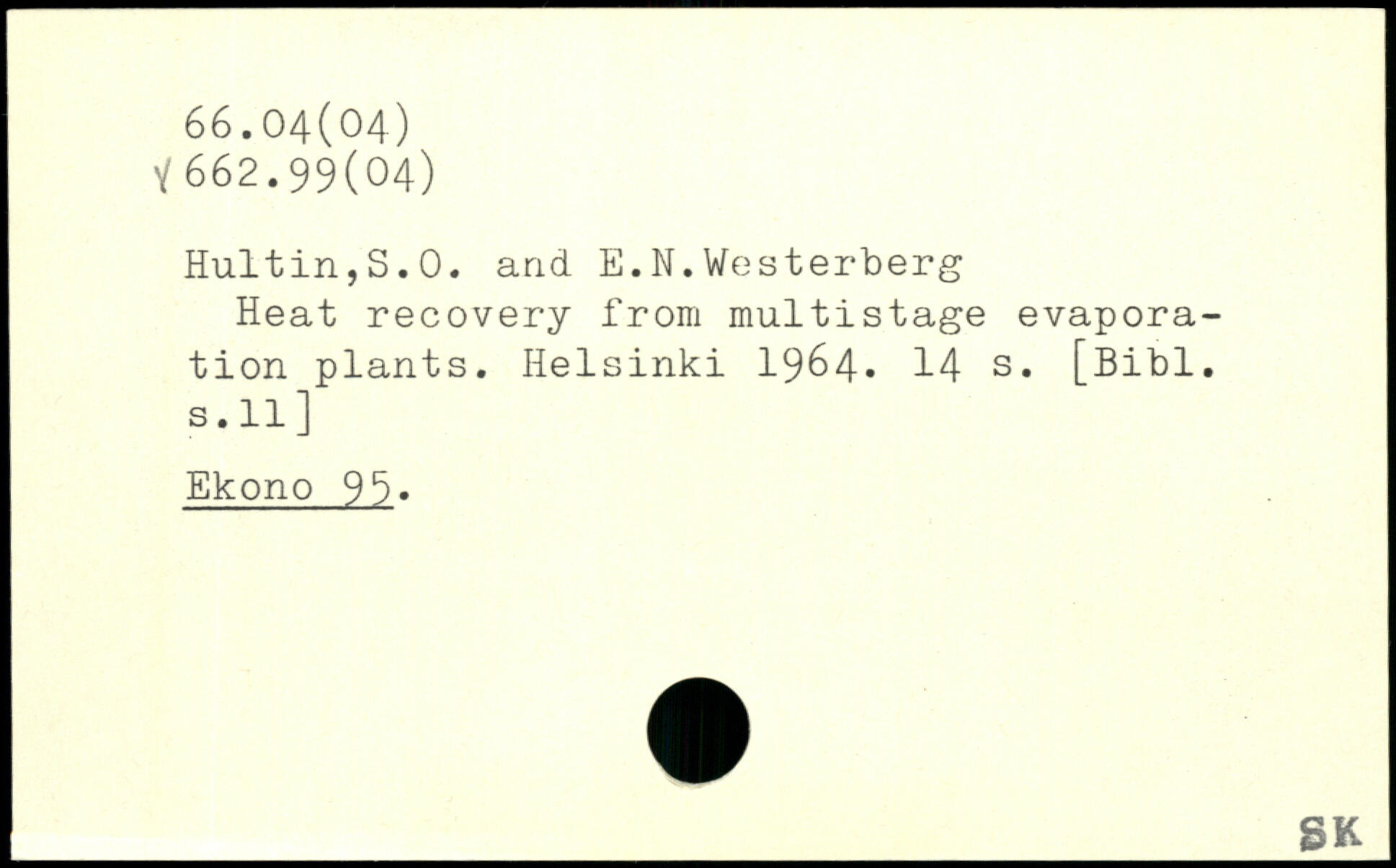 Hultin,S.O. and E.N.Westerberg | Heat recovery from multistage evaporation plants.