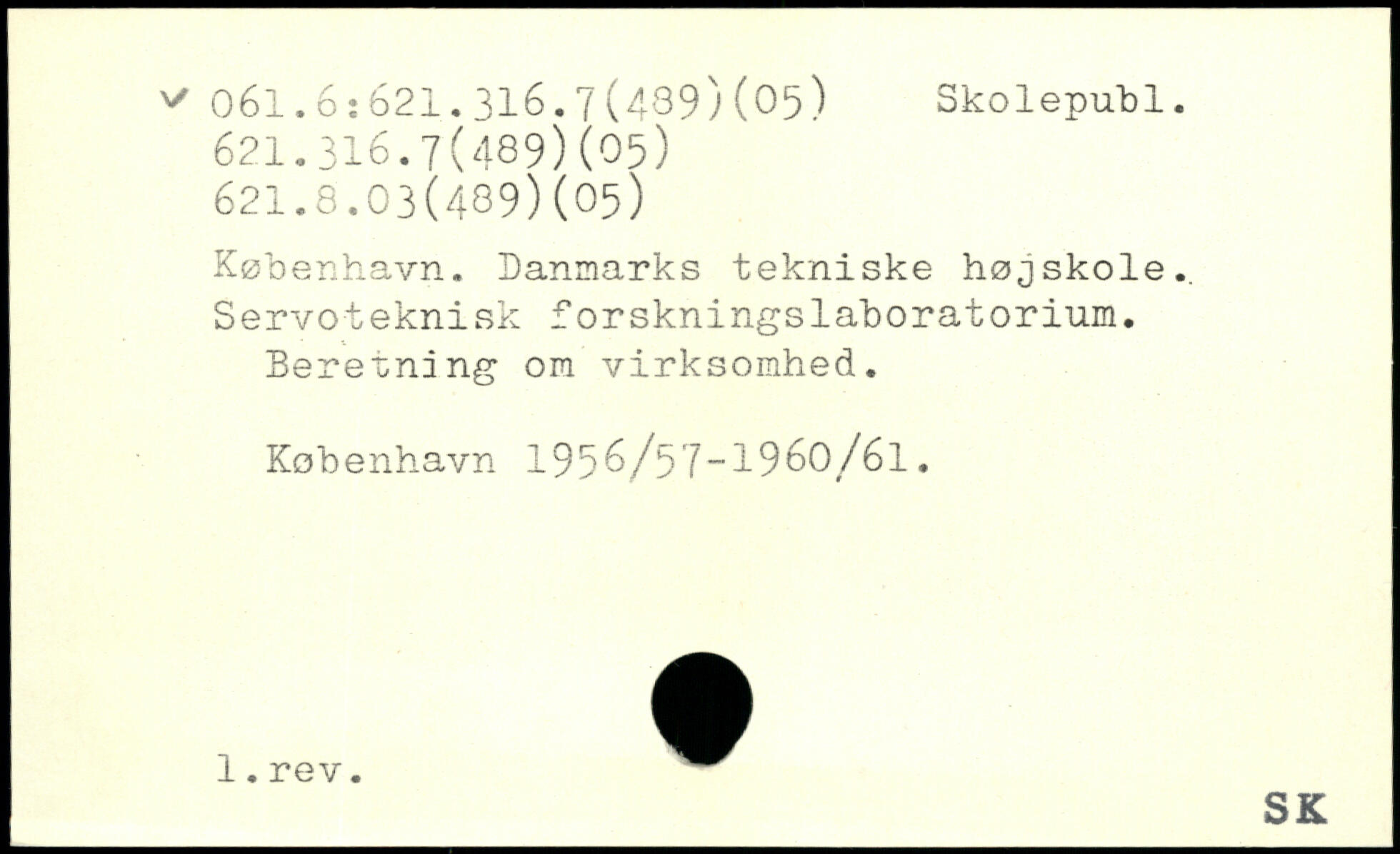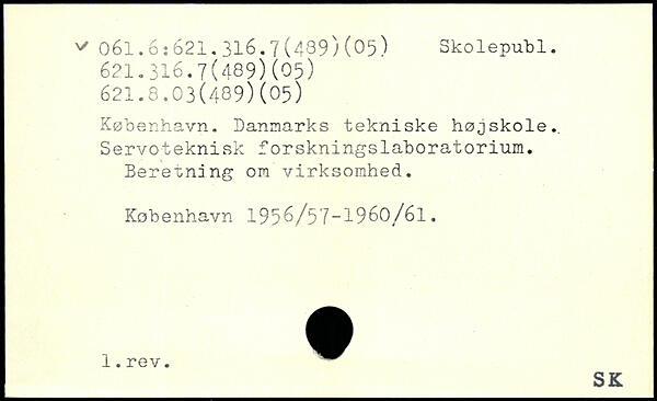 København. Danmarks tekniske højskole.. Servoteknisk forskningslaboratorium. Beretning om virksomhed. København 195^/57-1960/61.