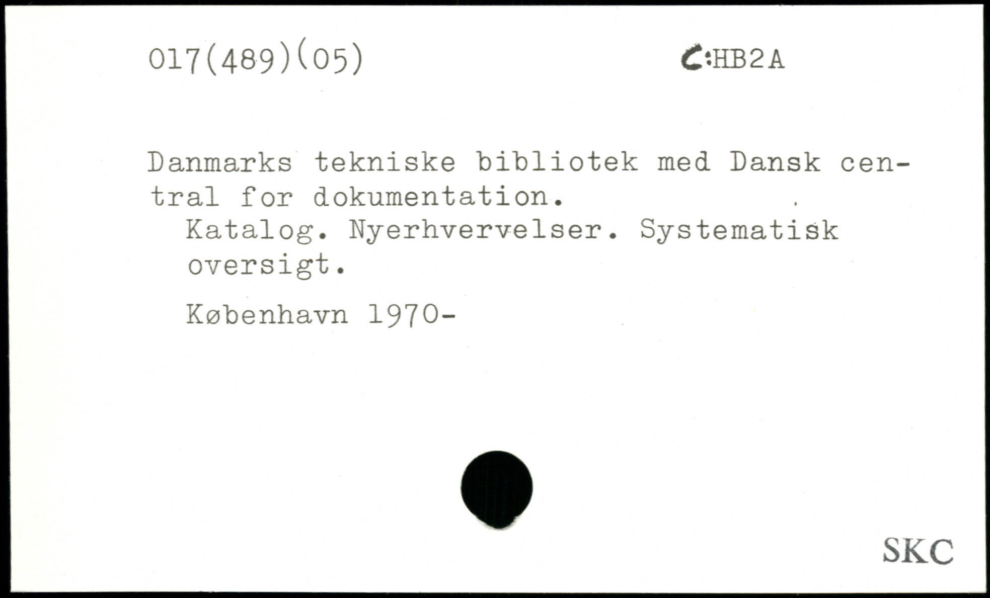 Danmarks tekniske bibliotek med Dansk central for dokumentation. Katalog. Nyerhvervelser. Systematisk oversigt.