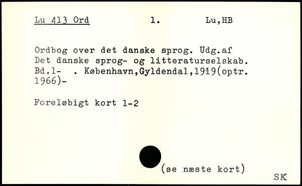 Ordbog over det danske sprog. Udg.af Det danske sprog- og litteraturselskab. Bd.l-.