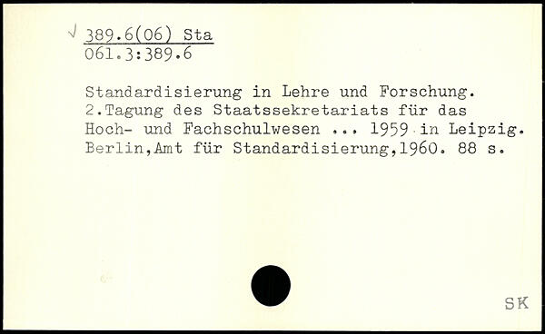Standardisierung in Lehre und Forschung. 2.Tagung des Staatssekretariats für das Hoch- und Fachschulwesen ... 1959 in Leipzig.