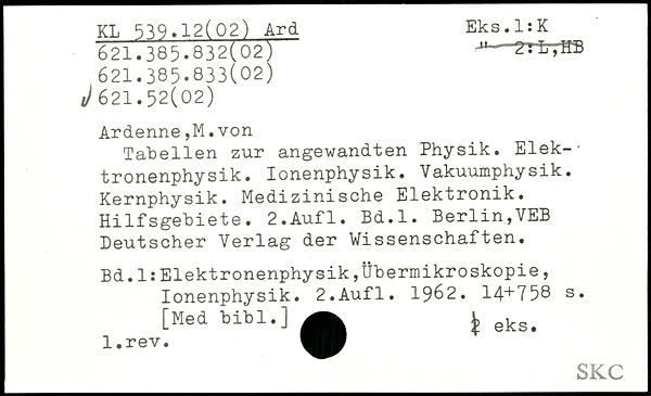 Tabellen zur angewandten Physik. Elek-■ tronenphysik. Ionenphysik. Vakuumphysik. Kernphysik. Medizinische Elektronik. Hilfsgebiete.