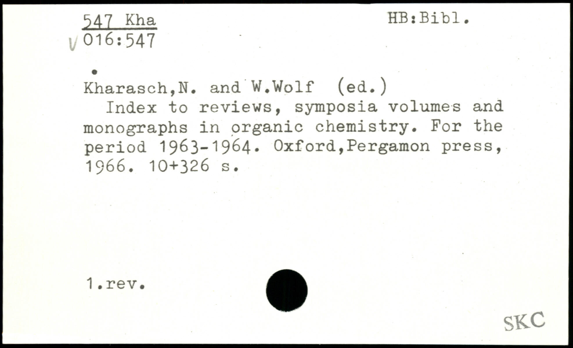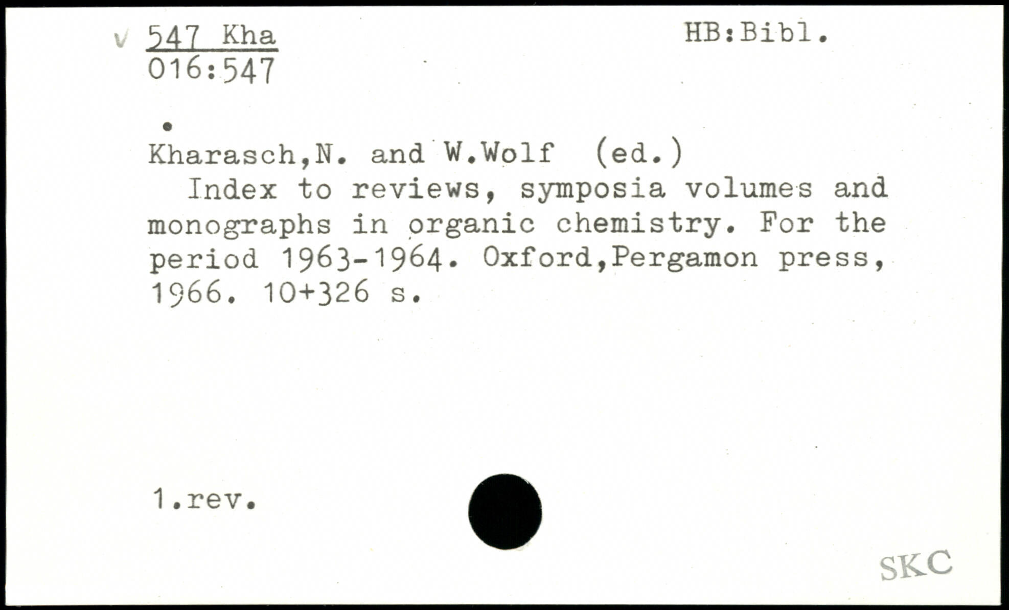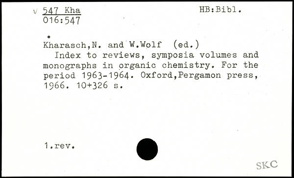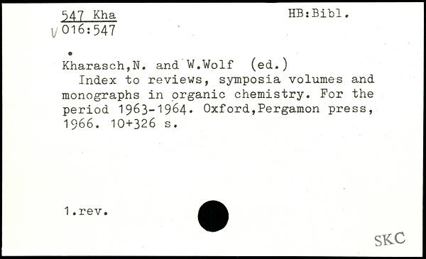 Index to reviews, symposia volumes and monographs in organic chemistry. For the period 1963-1964