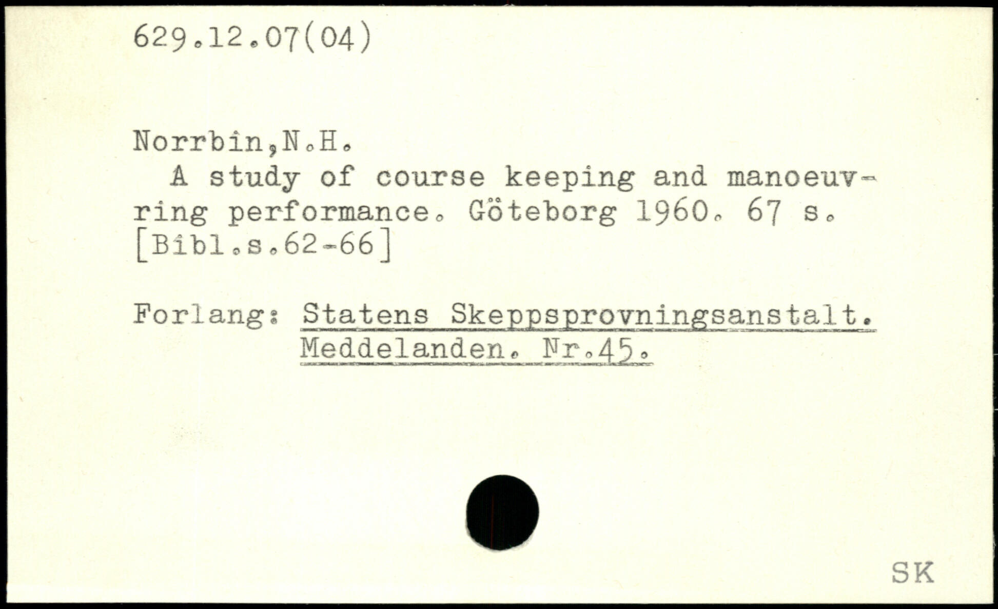 A study of course keeping and manoeuvring performance. Göteborg 1960. 67