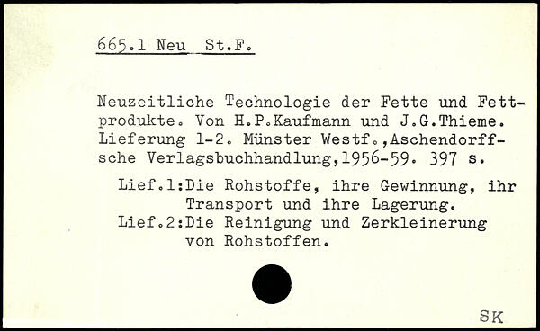 Neuzeitliche Technologie der Fette und Fettprodukte o Von H.P,Kaufmann und J.G.Thieme. Lieferung 1-2