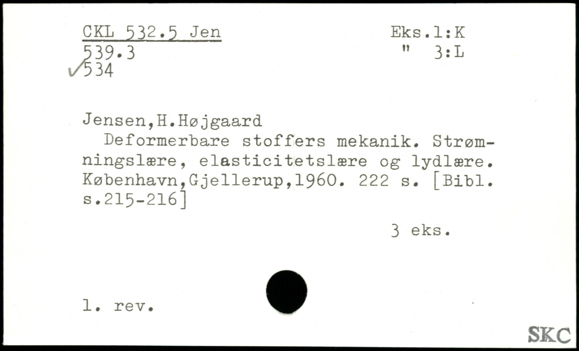 Jensen, H. Høj gaard Deformerbare stoffers mekanik. Strømningslære, elasticitetslære og lydlære.