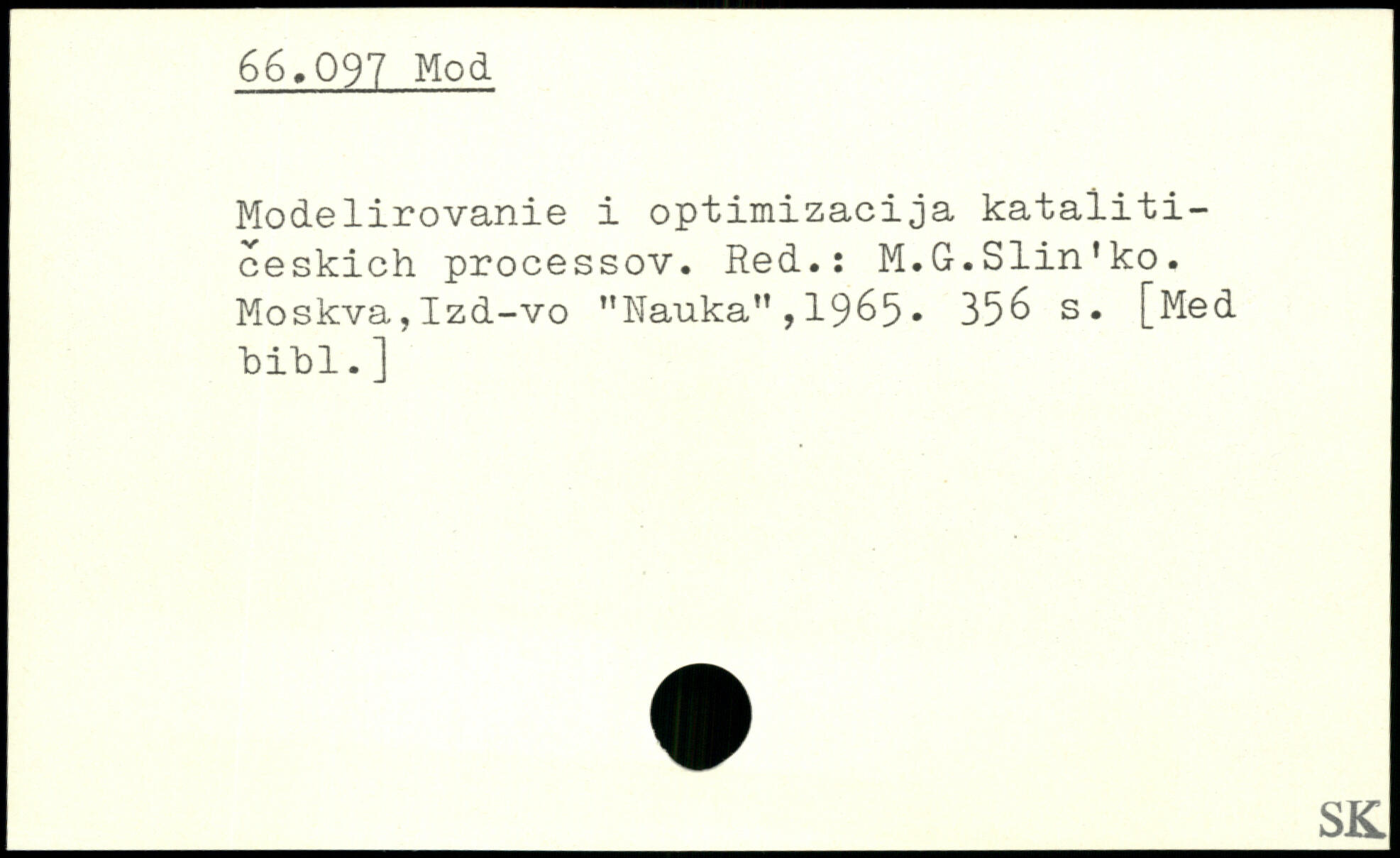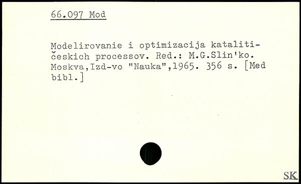 Modelirovanie i optimizacija kataiiti-ceskich processov. Red.: M.G.Slin'ko. Moskva,Izd-vo "Nauka”,1965. 35& s. [Med bibl.]
