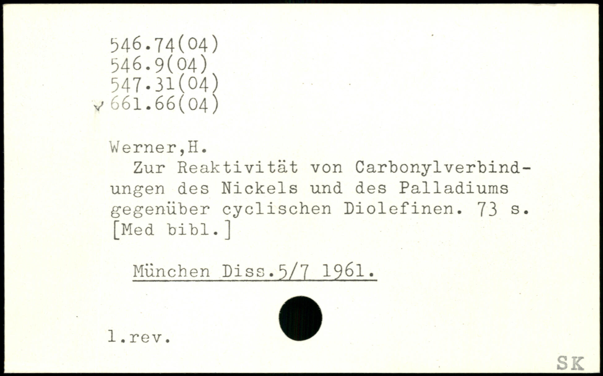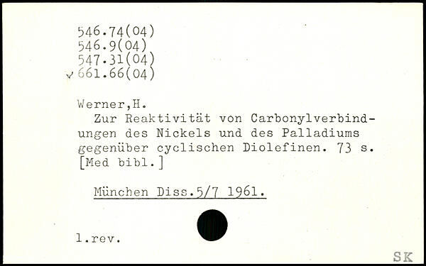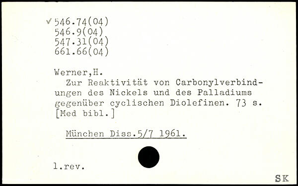 Zur Reaktivität von Carbonylverbindungen des Nickels und des Palladiums gegenüber cyclischen Diolefinen.