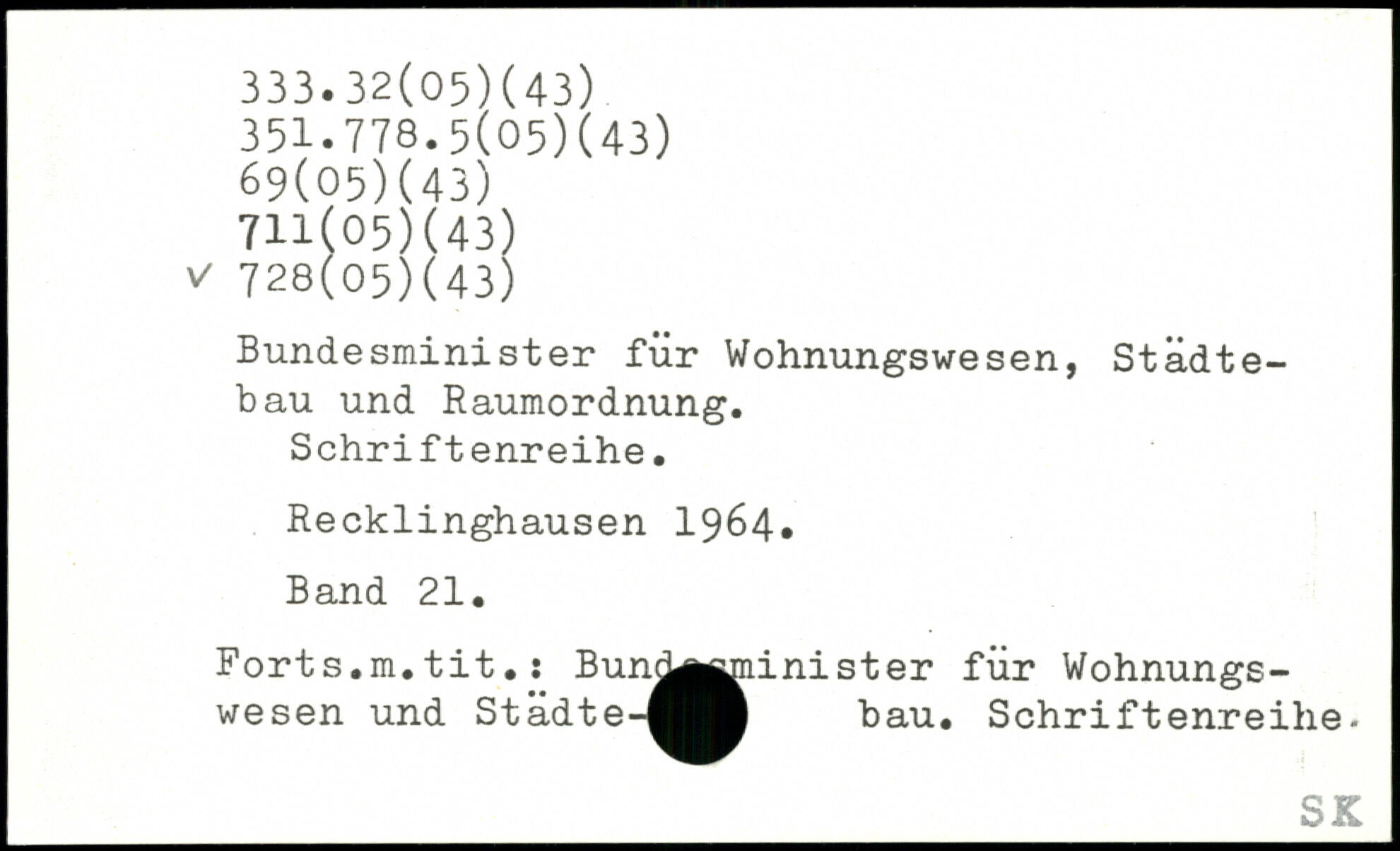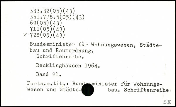Bundesminister für Wohnungswesen, Städtebau und Raumordnung. Schriftenreihe. Recklinghausen 1964. Band 21. Forts.m.tit.: Bun^^tiinister für Wohnungswesen und Städte-^^Ä bau. Schriftenreihe.