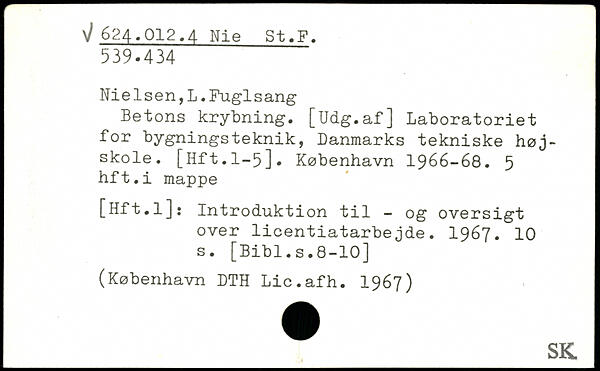 Nielsen,L.Fuglsang Betons krybning. [Udg.af] Laboratoriet for bygningsteknik, Danmarks tekniske højskole. [Hft.1-5].