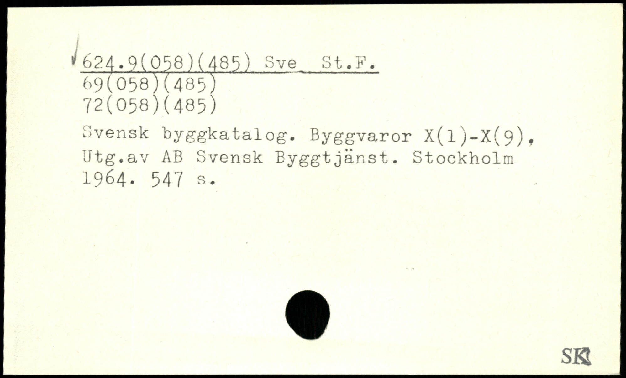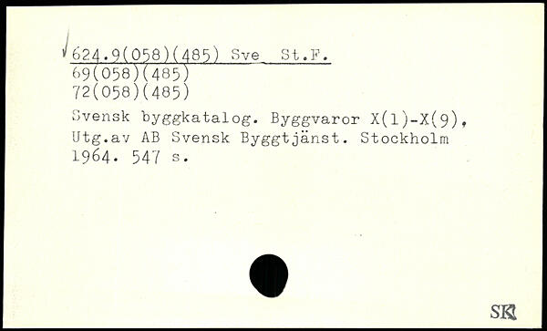 Svensk hyggkatalog. Byggvaror X(l)-X(9)f Utg.av AB Svensk Byggtjänst.