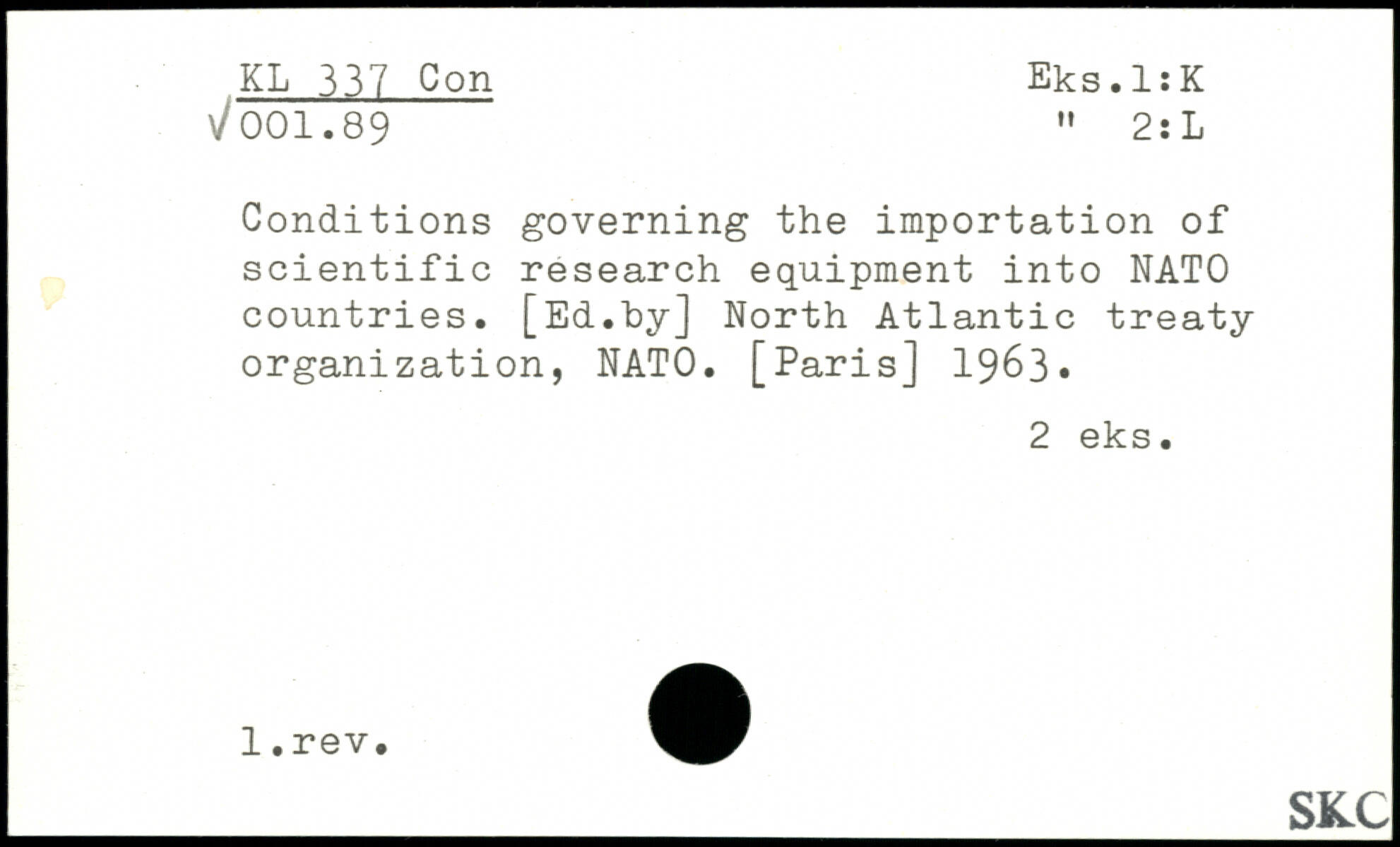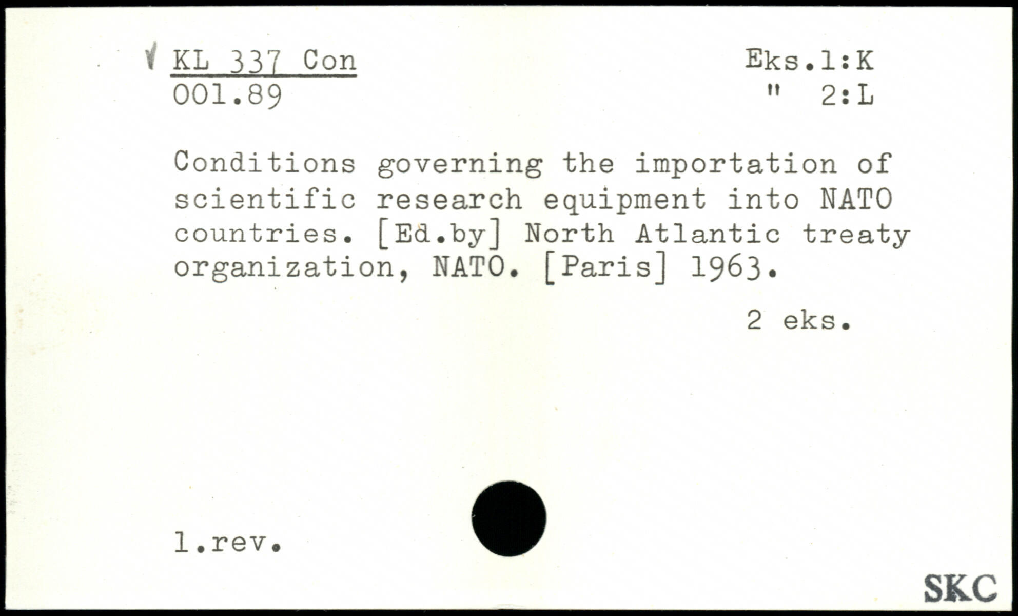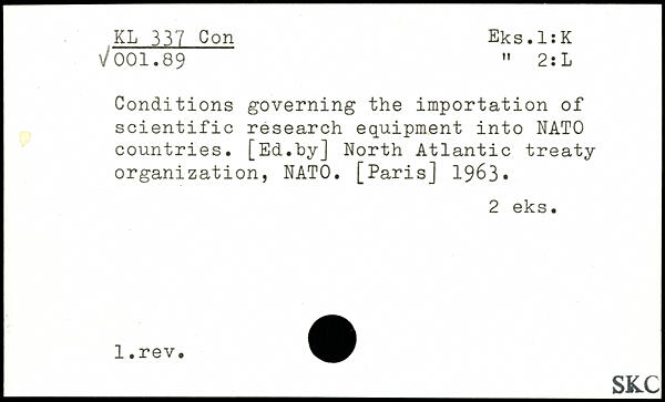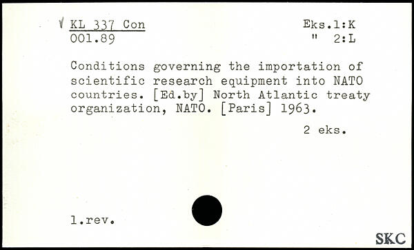 Conditions governing the importation of scientific research equipment into NATO countries. [Ed.Toy] North Atlantic treaty organization, NATO.