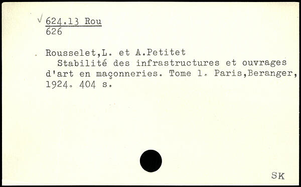 Stabilité des infrastructures et ouvrages d'art en maçonneries. Tome 1.