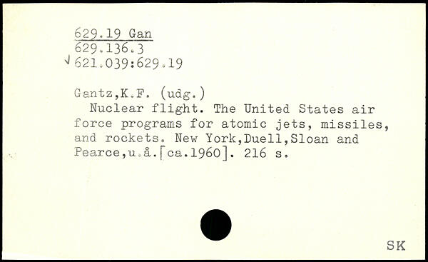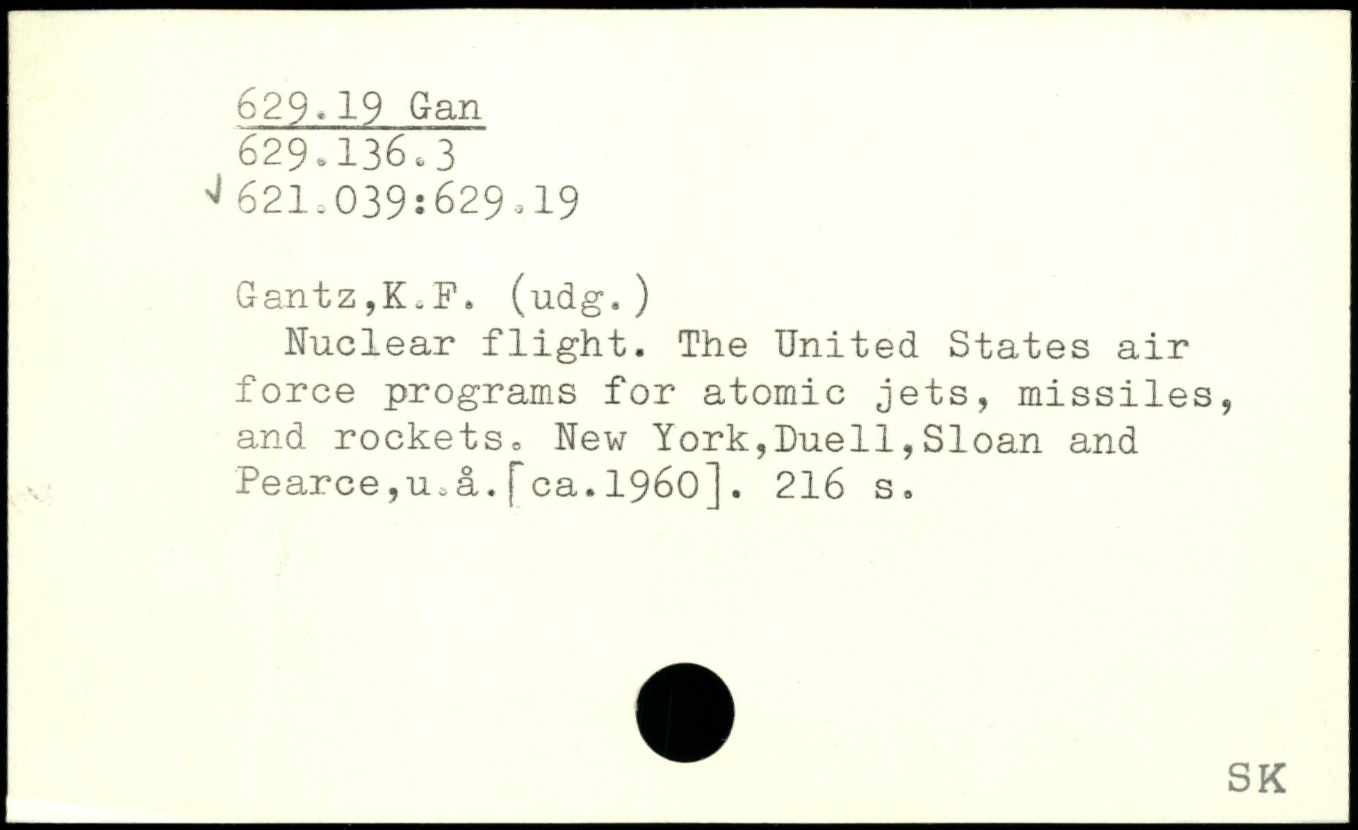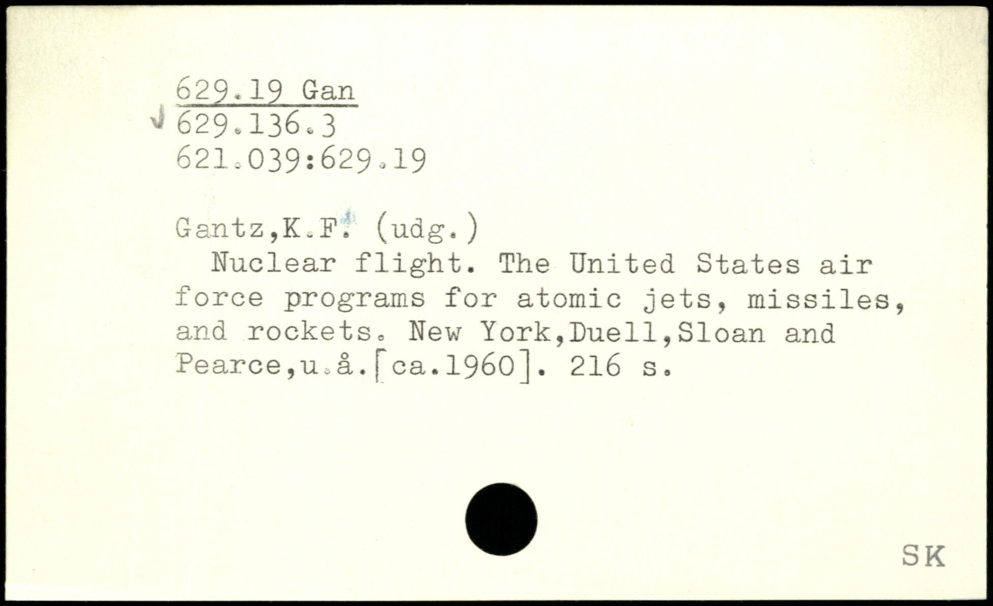 Gantz,K_Ft (udg.) Nuclear flight. The United States air force programs for atomic jets, missiles, and rockets. New York,Duell,Sloan and Pearce,u,â.[ca.1960].
