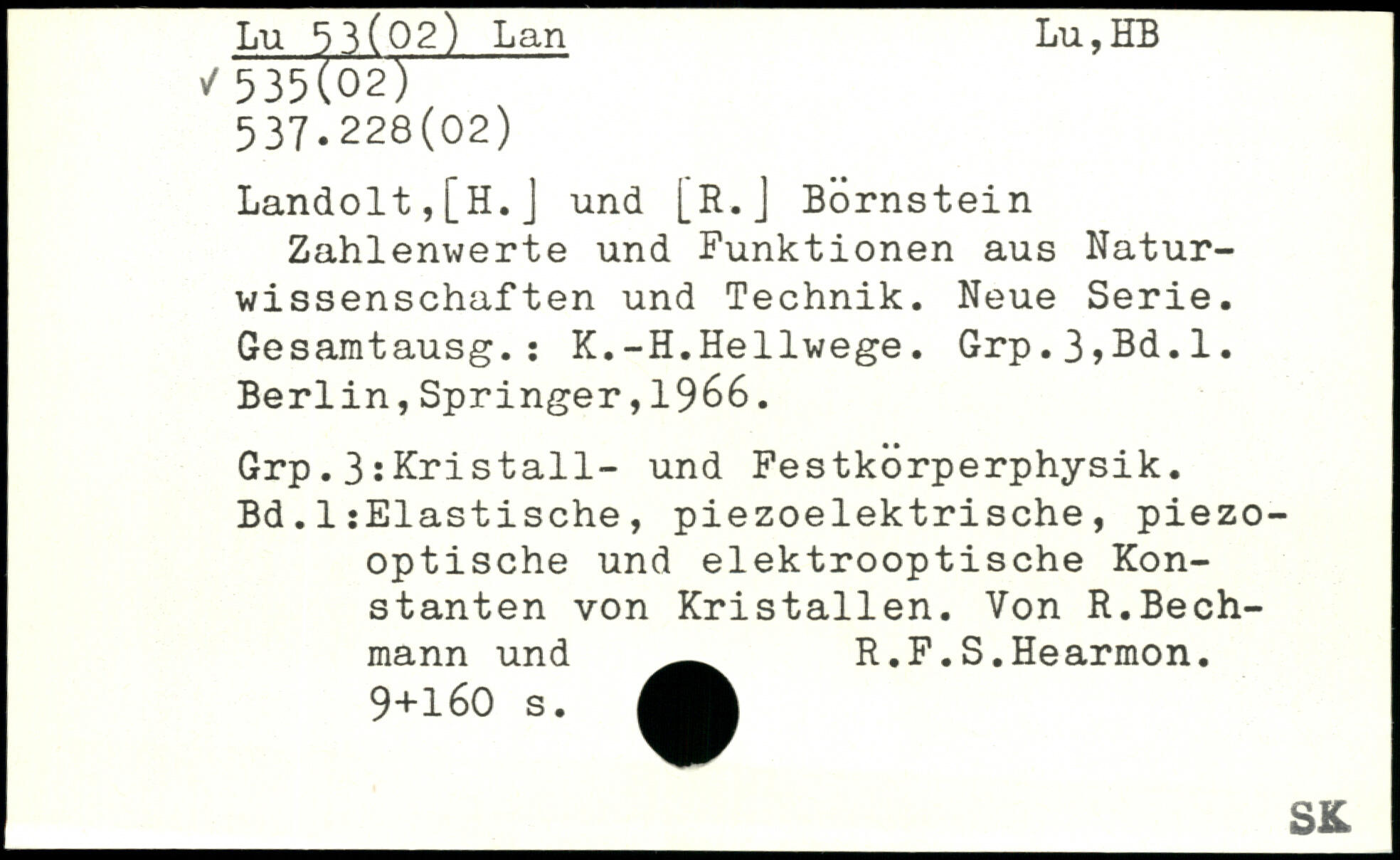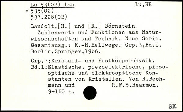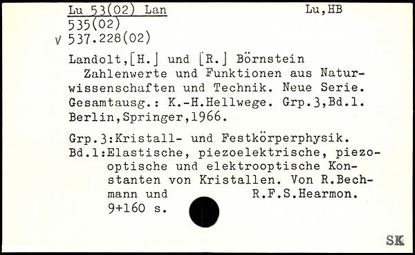Landolt,[H.J und [R.J Börnstein Zahlenwerte und Funktionen aus Naturwissenschaften und Technik. Neue Serie. Gesamtausg.: K.-H.Hellwege. Grp.3,Bd.l.