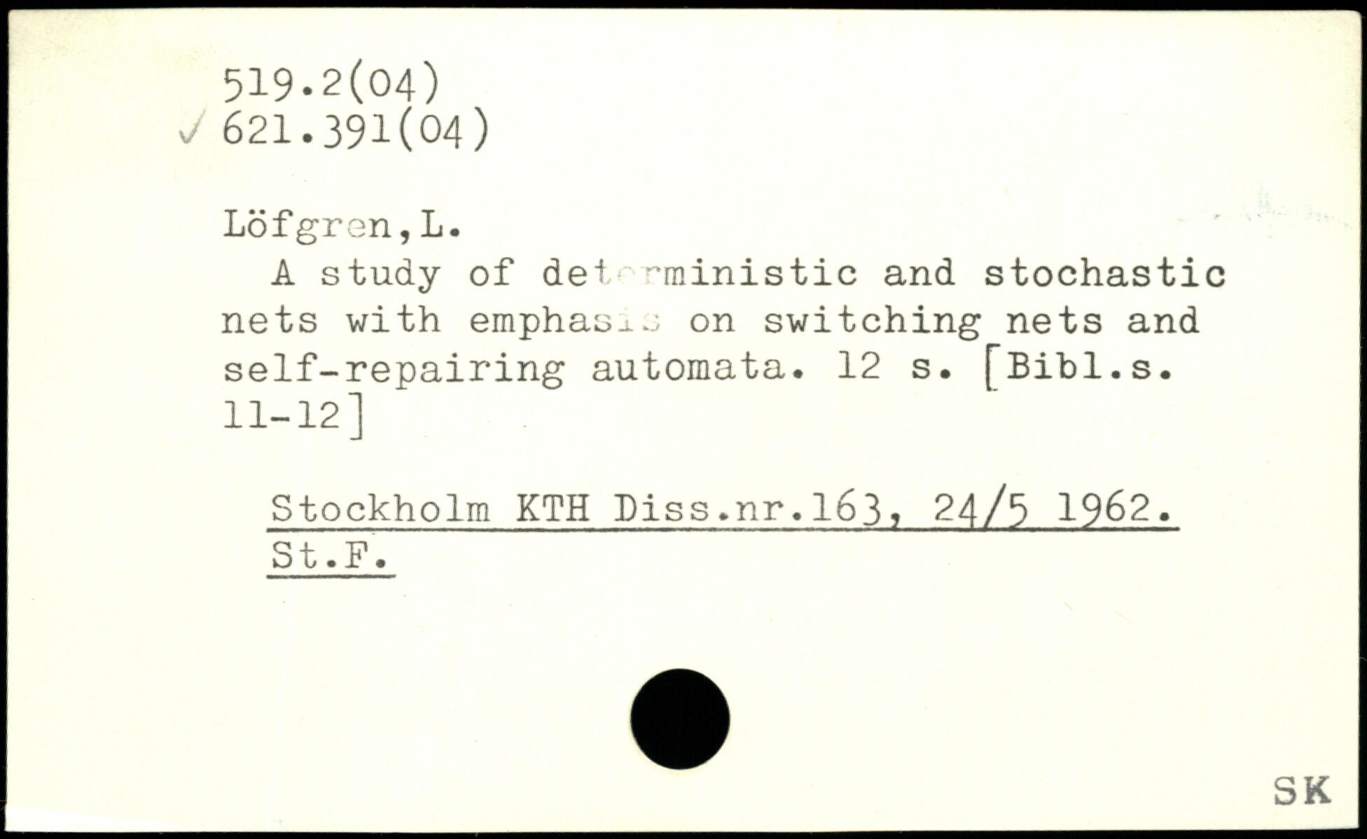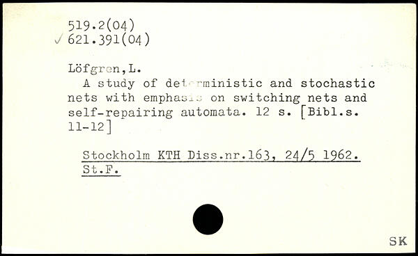 A study of del mninistic and stochastic nets with emphases on switching nets and self-repairing automata.