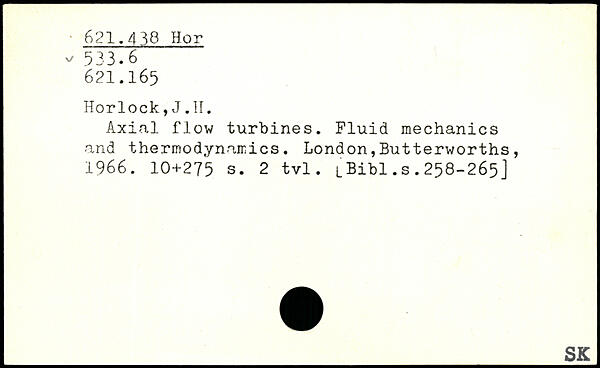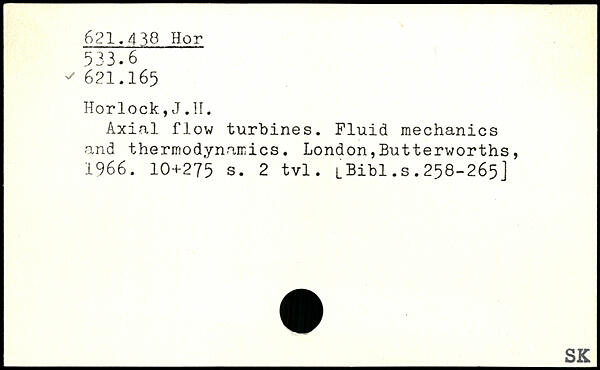 Axial flow turbines. Fluid mechanics and thermodynamics.