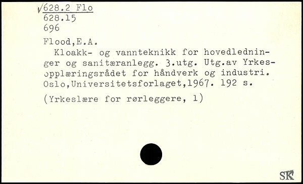 Kloakk- og vannteknikk for hovedledninger og sanitæranlegg. 3,utg. Utg.av Yrkes-opplæringsrådet for håndverk og industri.