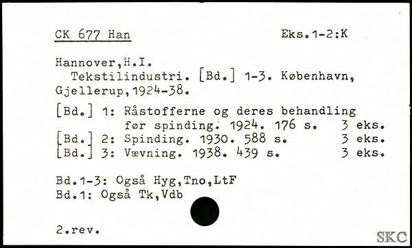 Tekstilindustri. [Bd.] 1-3. København, Gjellerup,192.+-38. [Bd.] 1: Råstofferne og deres behandling før spinding. 192.+. 1?