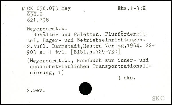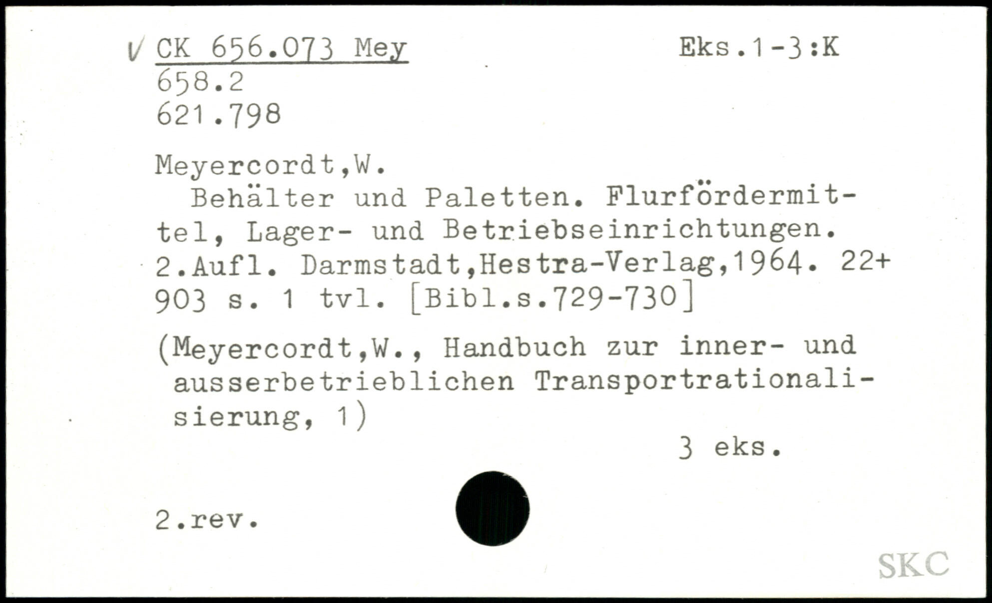 Behälter und Paletten. Flurfördermittel, Lager- und Betriebseinrichtungen.