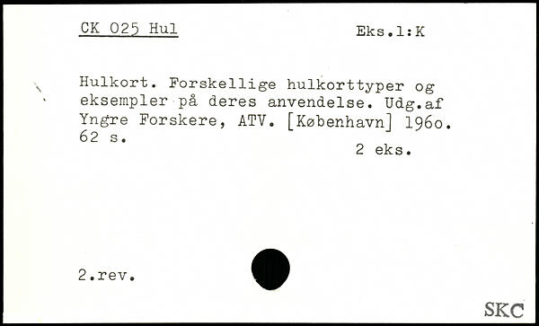 s Hulkort. Forskellige hulkorttyper og ‘ eksempler på deres anvendelse. Udg.af Yngre Forskere, ATV.