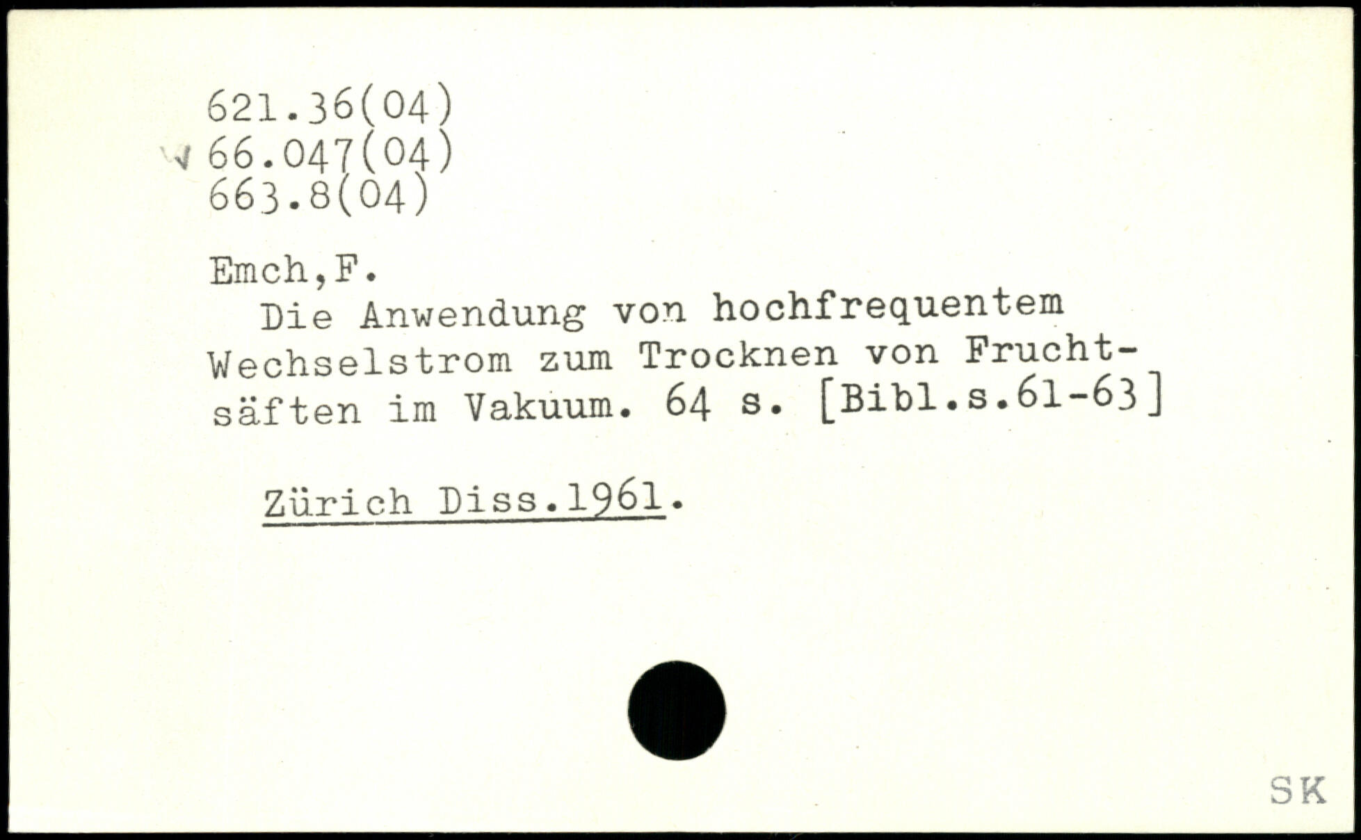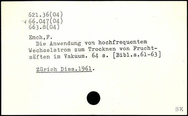 Die Anwendung von hochfrequentem Wechselstrom zum Trocknen von Fruchtsäften im Vakuum.