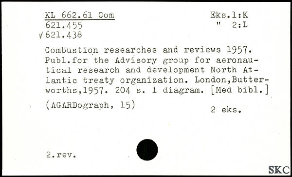 Combustion researches and. reviews 1957, Publ.for the Advisory group for aeronautical research and development North Atlantic treaty organization.