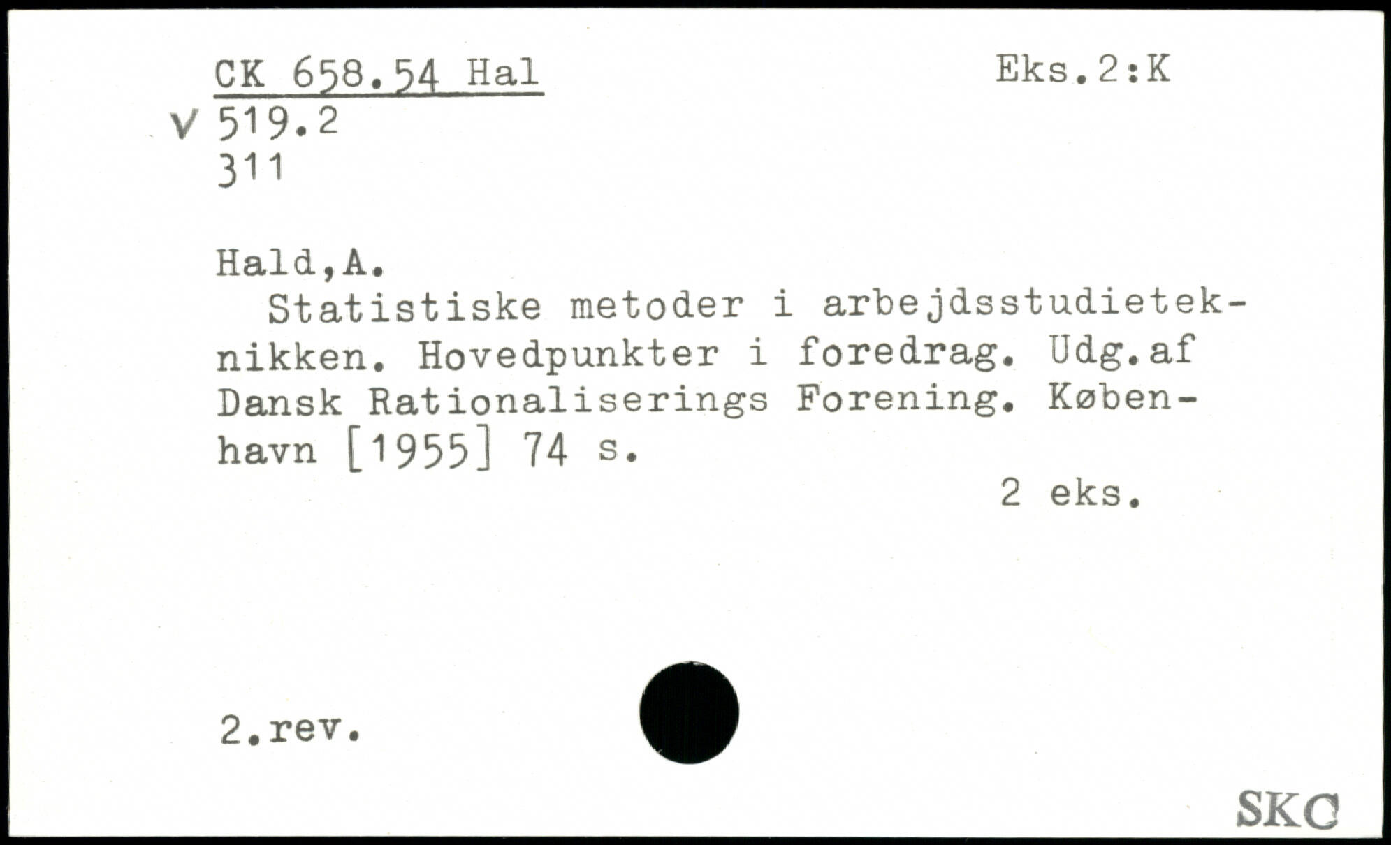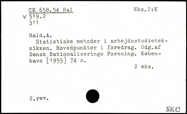 Statistiske metoder i arbejdsstudieteknikken. Hovedpunkter i foredrag. Udg.af Dansk Rationaliserings Forening.