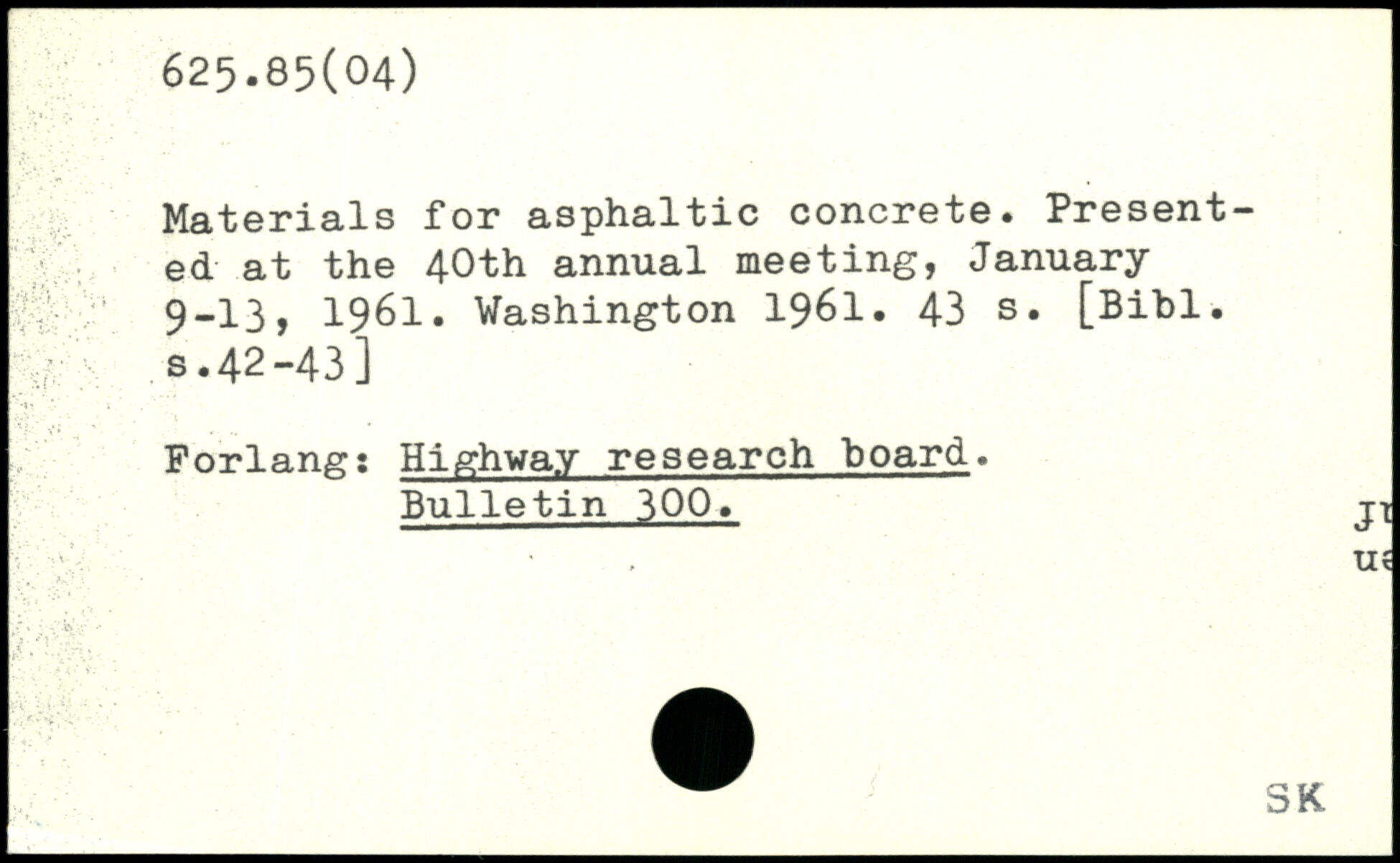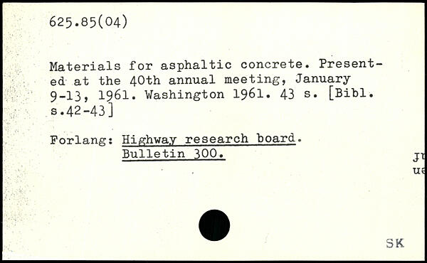 Materials for asphaltic concrete. Presented at the 40th annual meeting, January 9-13, 1961.
