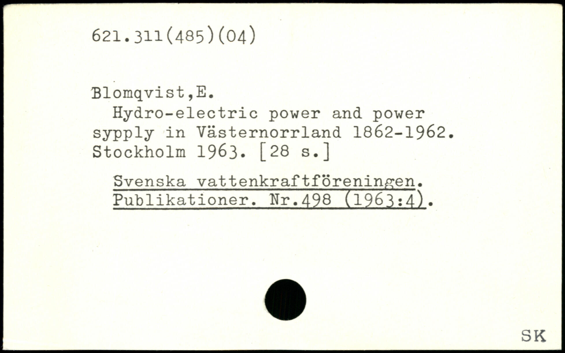Hydro-electric power and power sypply in Västernorrland 1862-1962.