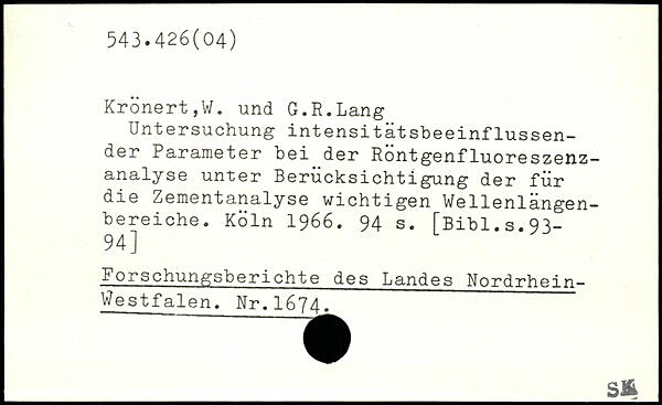 Untersuchung intensitätsbeeinflussen-der Parameter bei der Röntgenfluoreszenz-analyse unter Berücksichtigung der für die Zementanalyse wichtigen Wellenlängenbereiche.