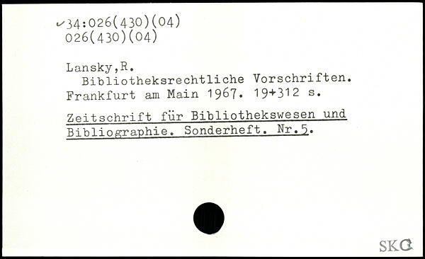 Bibliotheksrechtliche Vorschriften. Frankfurt am Main 19&7