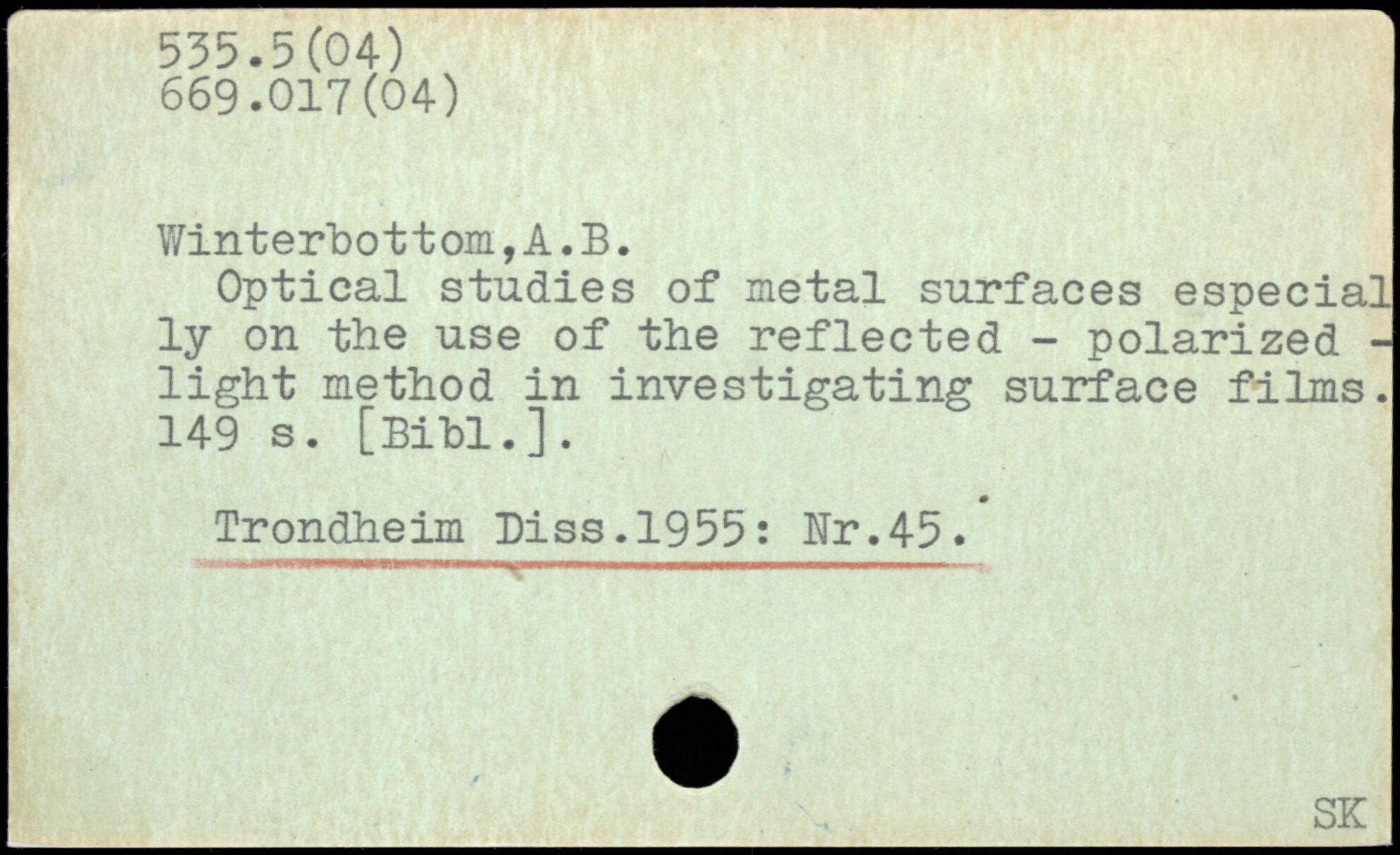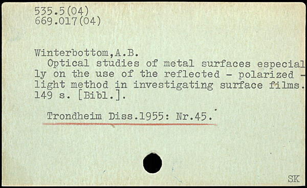 Optical studies of metal surfaces especial ly on the use of the reflected - polarized -light method in investigating surface films.