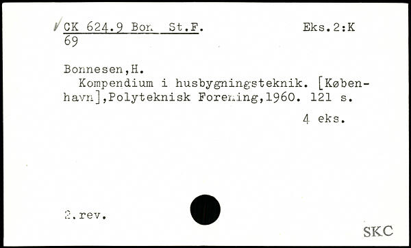 Kompendium i husbygningsteknik. [København] ,Polyteknisk Forening,1960.